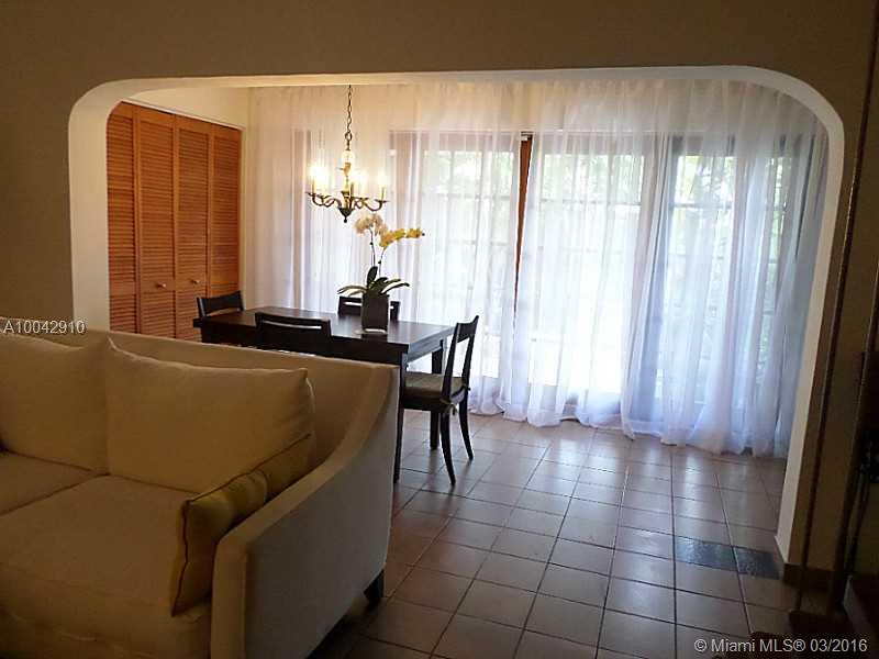 Town Home in the quiet yet perfectly located neighborhood of San Souci. WholeFoods, HomeDepot, TJMax and much more within walking distance. Bal Harbour and the beach less than 3 miles away. This charming home has 2/2 upstairs and a 1/2 bath downstairs. Great floor plan with French doors to the kitchen and another set opening to a lush patio. The house is bathed in sunlight. May not lease for first 2 years.