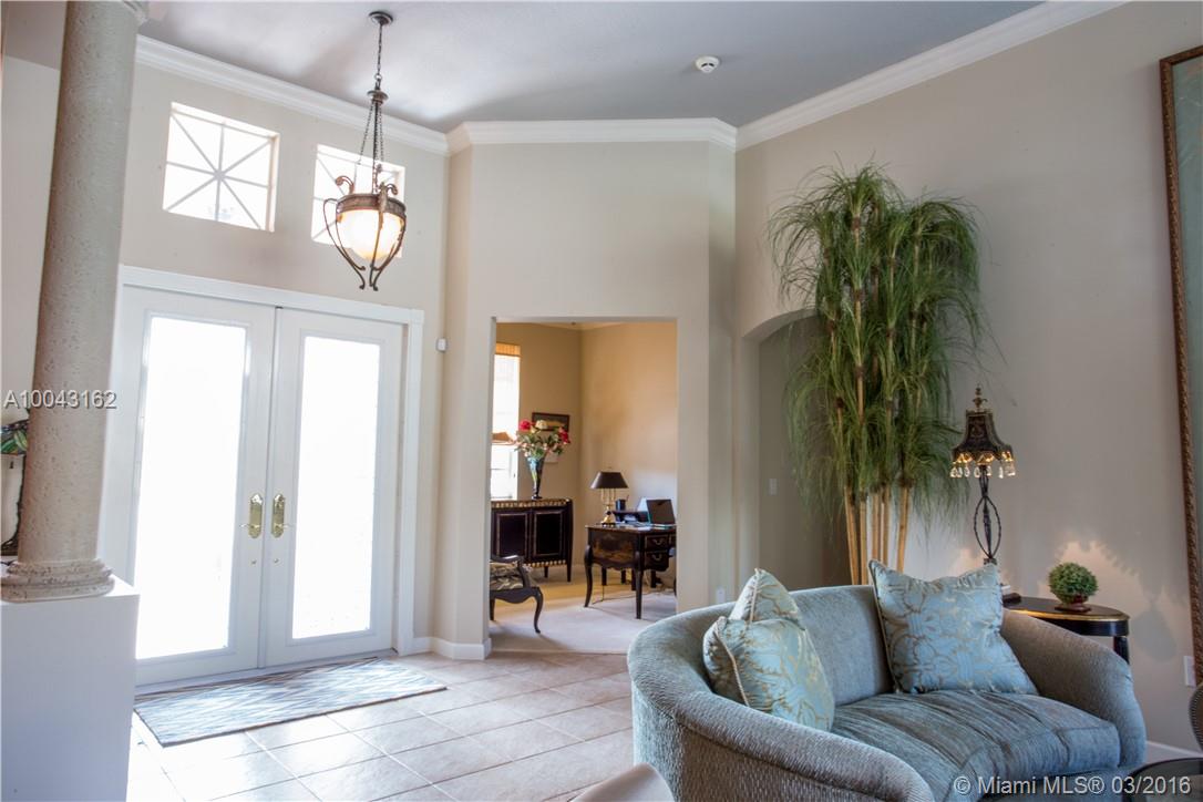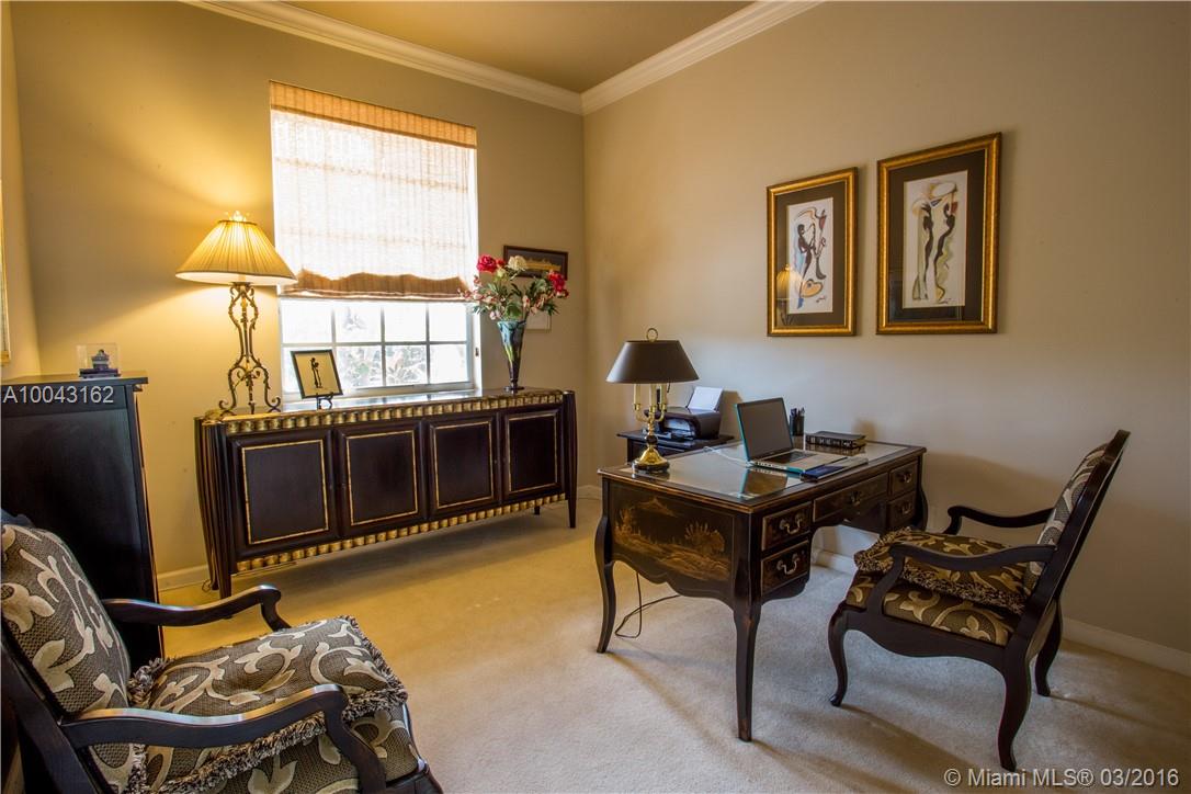 This majestic home a 4/3/3 + office is undeniably an interior designer's dream with sophisticated decor throughout. Home has very desirable finishes in all bedrooms, master has a very sophisticated feel. A fully updated kitchen, custom cabinetry, corian counters, walk in pantry, crown molding. Attention to details! Huge free form pool w spa, pavers in backyard and circular drive, landscaping lighting, accordion shuttters. Meticulously maintained! Resort style clubhouse, A+ schools. A MUST-SEE!