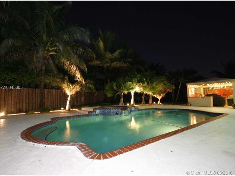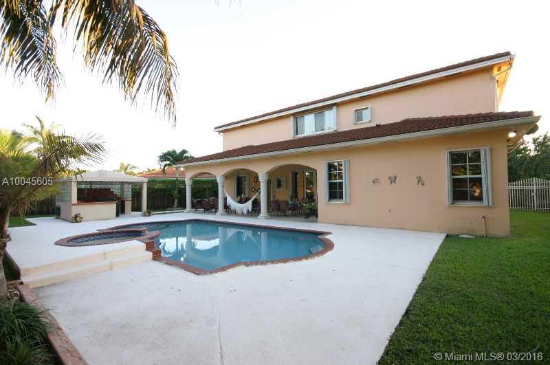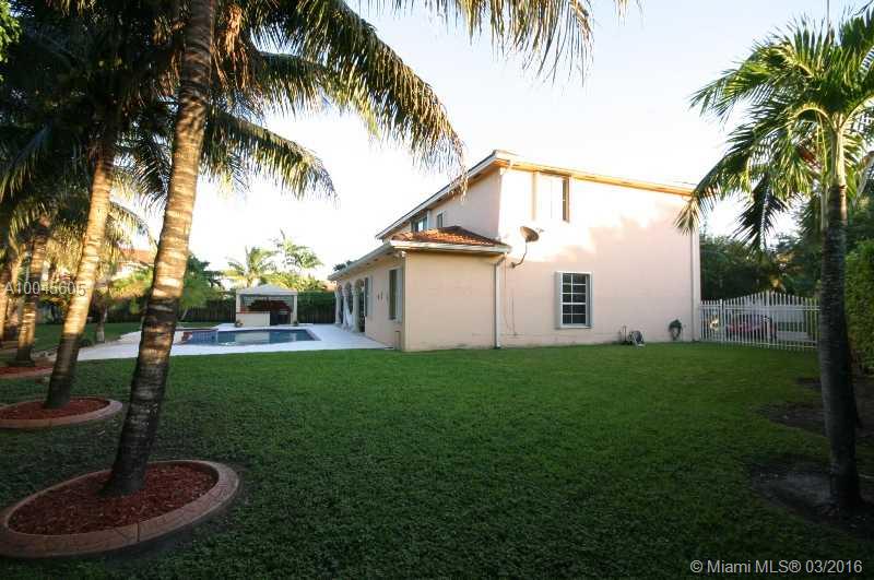 2Story 5/3 circular driveway home, granite kitchen countertop, SS appliances, crown moldings & tiles throughout, fireplace, huge master, his & her walk-in closets, surround sound system, 1 bdrm w/open balcony, 1 bdrm on 1st flr w/full cabana bath, laundry rm & oversized lot w/room for boat or RV on side, 2 car garage, heated pool, Jacuzzi, outdoor gazebo w/kitchen & bar, shed, sprinkler system, concrete landscape moldings, surveillance ready & accordion shutters. Eden Roc furniture included. Miami Springs