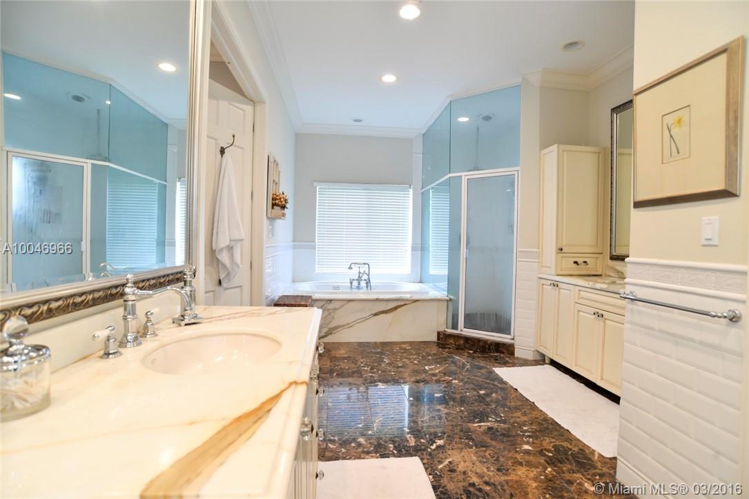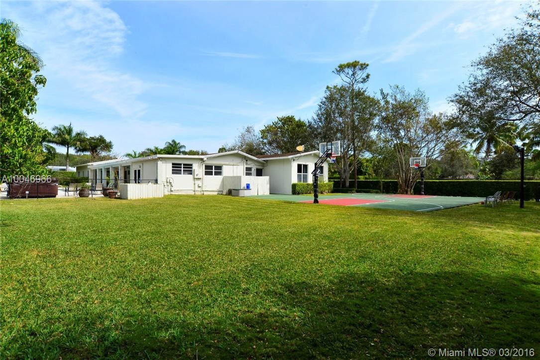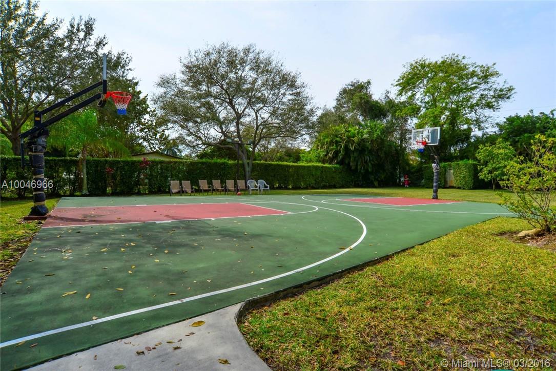 Beautiful, family oriented home on a quiet street in Pinecrest.Spacious formal dining & informal living rm with 10 ft. ceilings & hardwood floors.5 Bed/3.5 Baths.All Bathrooms & Oversized Master suite exquisitely remodeled.His/Her closets w/Jacuzzi tub & steam shower w/elegant marble throughout.Custom Eat-in kitchen w/Antique Ivory wood cabinets & center Island.Finest Viking stove,double ovens w/warming draw & sub-zero refrigerator open to play room.Backyard pool,hot tub & mini full-court basketball court
