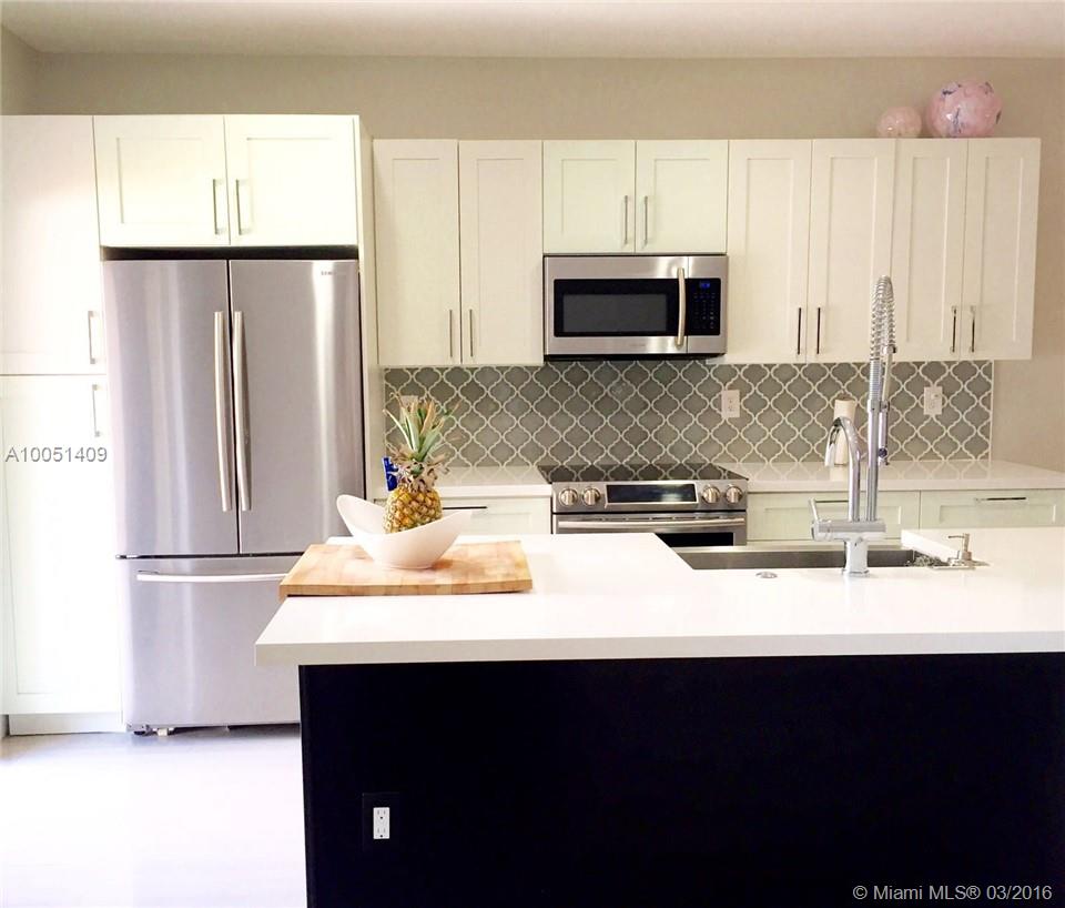 "Beautiful 3/3 Townhome with garage in highly desirable Viscaya Development!" Brand new kitchen featuring European Style Cabinets, Island, stainless steel appliances and beautiful quartz counter tops. Other custom features include brand new hand wrought iron rail on staircase. New 12X24 tiles first floor; freshly painted first floor; high volume 16' ceilings on first floor. Owner transferred.