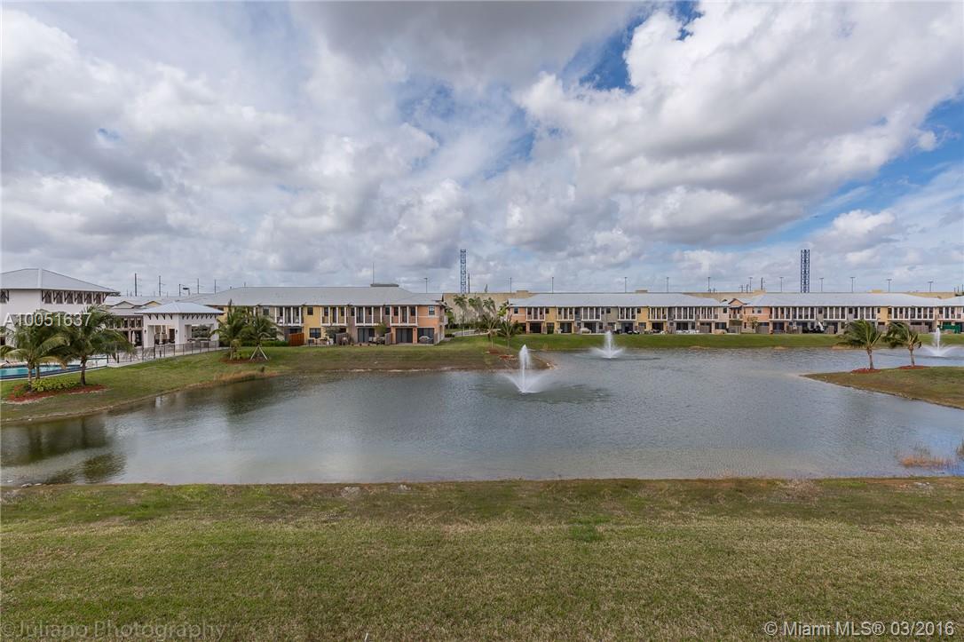 Enjoy this beautiful townhouse full of upgrades and front lake view. This townhouse features: confortable floor plan with 4 bedrooms and 3 full baths, convenience 1/1 on the first level, porcelain floors and carpet on the 2nd floor. Custom cabinets and quartz countertops in the kitchen. Amazing lake view just few houses away from Doral Cay Club House. 2 balconies and paver patio. Gated community. Only 158 townhouses in the community. Easy to show. Owner motivate. Don't miss it!!!