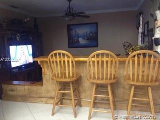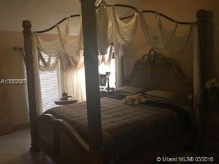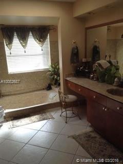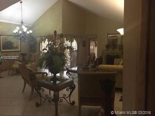 Beautiful family home in a gated community in the Miami Lakes area. High vaulted ceilings makes this house bright and airy. Large open living room right next to the kitchen. Newly renovated den area that can be used as an office space. Master bath has shower as well as roman tub and skylight. Spacious recently renovated kitchen with view to the patio and terrace. Screened in tiled terrace. Patio has a bar and is covered by two awnings.
