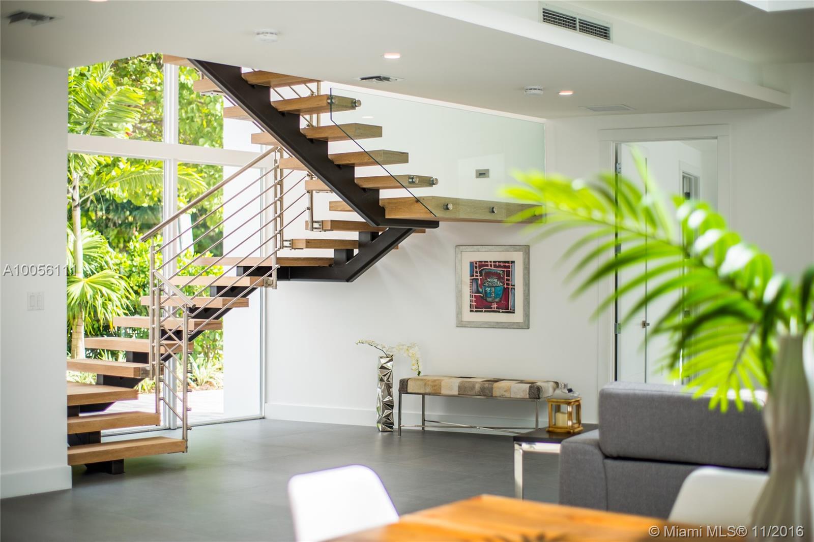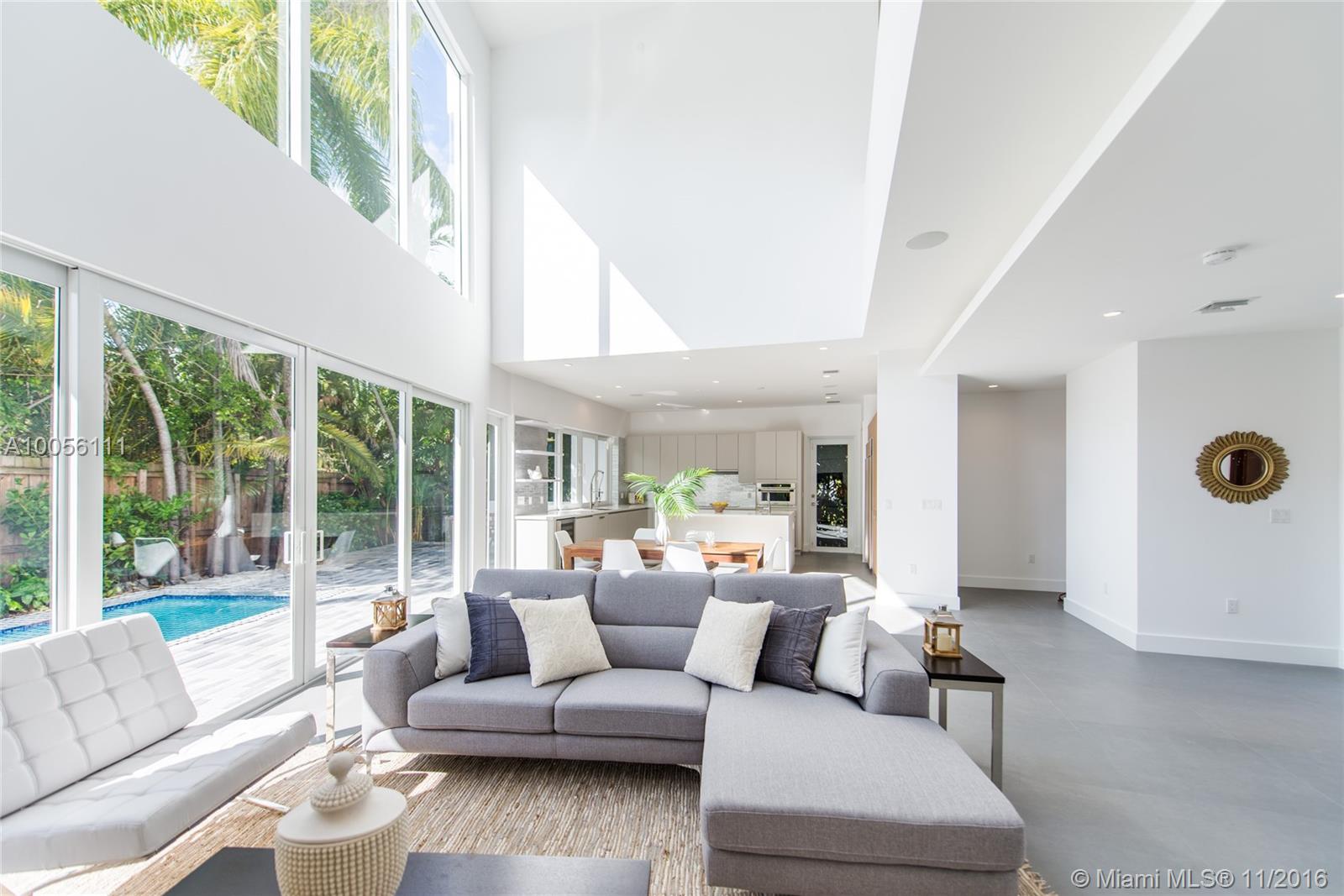 Tropical modern style new construction home in prestigious North Coconut Grove. Expansive & light filled open living spaces with volume ceilings and walls of glass that overlook the outdoor terrace & pool. Sleek Euro-style custom kitchen with high end finishes & appliances. Luxurious master suite with spa-like bath. Walk or bike to bay front parks & marinas. Minutes to downtown ,MIA, the Beaches and to the Grove village center’s galleries, boutiques & cafes.