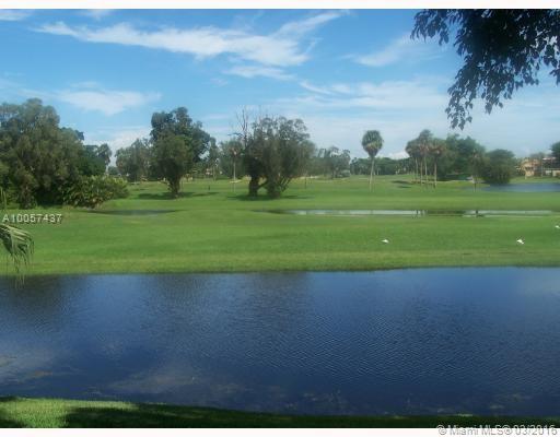 Stunning town home with unending views of the Country Club of Miami Golf Course and Lakes. Living Room boasts extremely large windows overlooking the course with 18 ft. floor to ceiling windows. Elevated Formal Dining Room with galley kitchen. Both bedrooms are very spacious. Master Bedroom has panoramic views of golf course. Home has tons of natural light. This home has an abundance of potential.