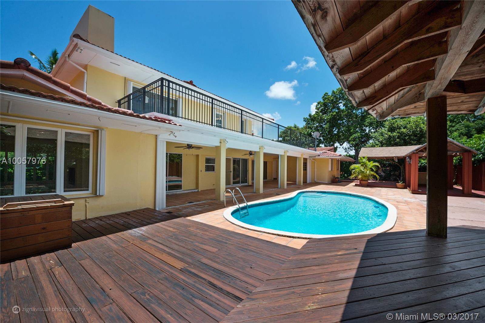 Pinecrest 1/2 acre pool home. Walk to best elem., middle & high schools. This home is ideal for a large family. Travertine floors & wood laminate in bedrooms. 2 separate family rooms a living room & dining room. 5 bedrooms with the master upstairs & 4 beds downstairs. 4.5 bathrooms total. Beautiful back patio perfect for entertaining. Spacious kitchen adjacent to family room & opens to back patio. Gated entry, great privacy throughout. Move-in ready. Large shed for storage in back with a/c. Fruit trees.