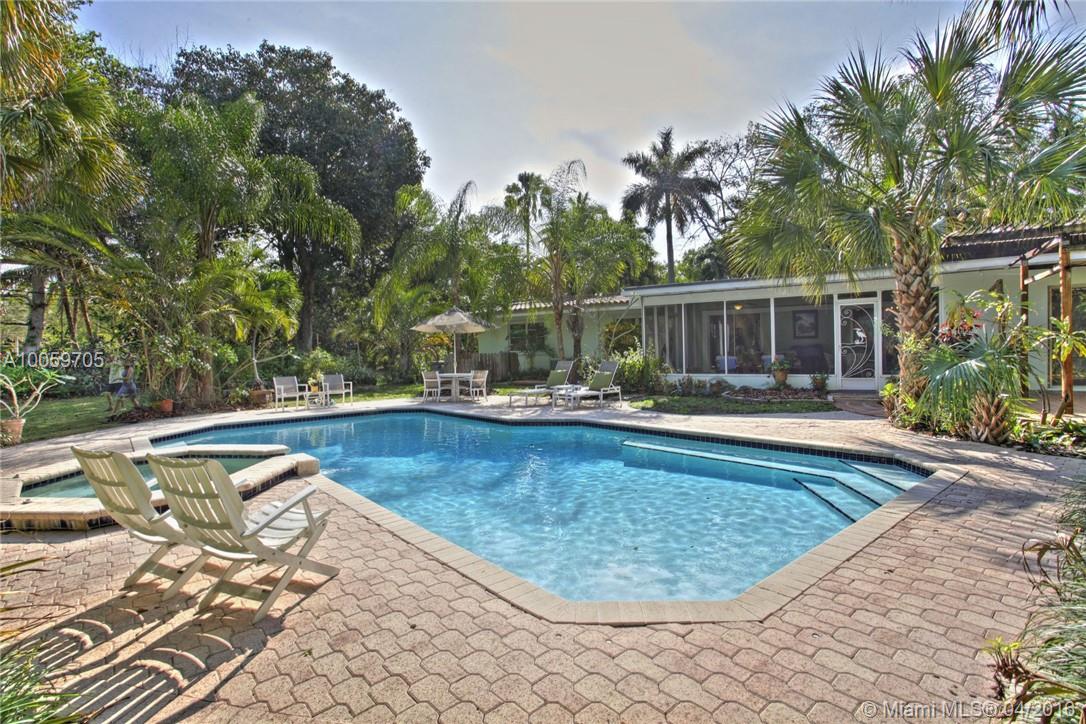 Wonderful home on gorgeous tropical over-sized 3/4 Acre Lot in Pinecrest. House is well maintained with various updates, including remodeled kitchen, bathrooms, & barrel tile roof. Many windows view out to a lovely screened porch and wonderful wood decking / patio with resort style swimming pool & spa. Separate family room with 3rd bath could be used as 4th bedroom or guest quarters. Room to expand on this beautifully landscaped lot with fabulous trees, including Oaks, Gumbo Limbo,Frangipani, and more.