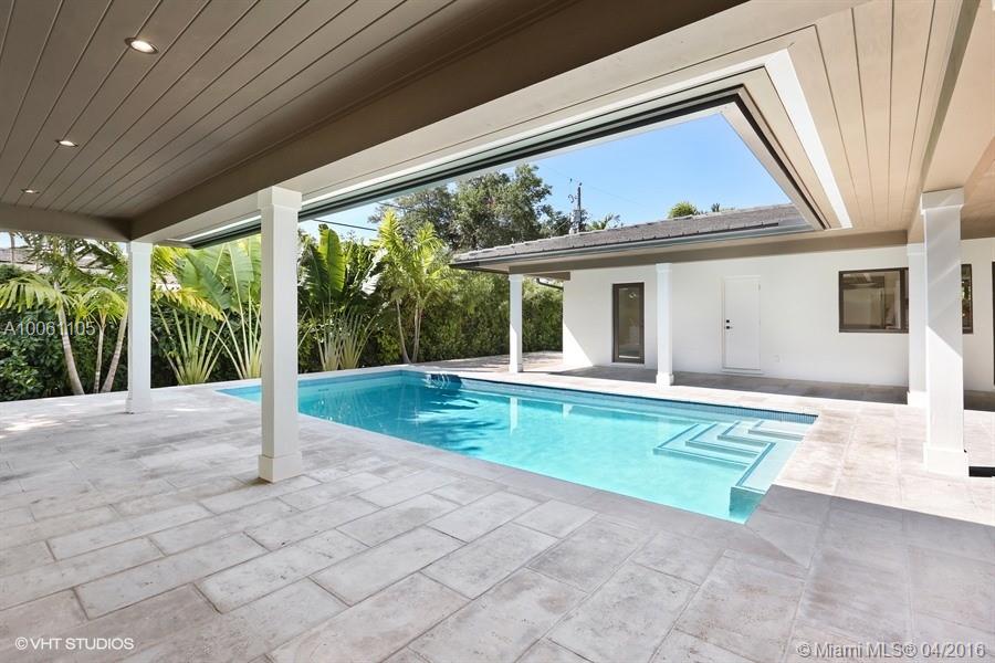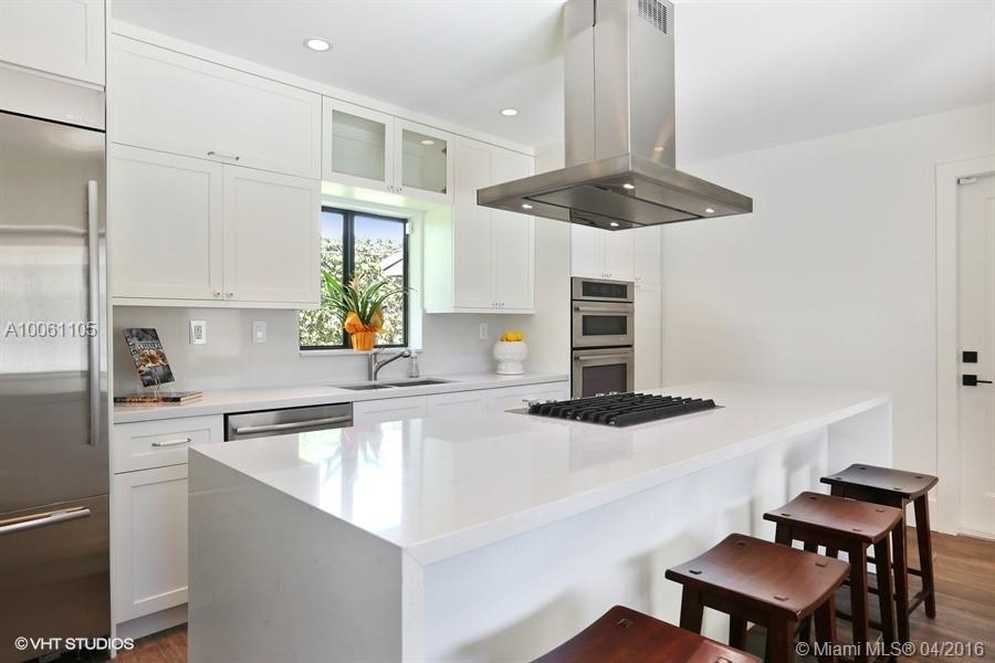 Beautiful contemporary Coral Gables home exquisitely remodeled with great attention to detail. This 4 BR/3BA home boasts an open floor plan & abundant natural light throughout. The wide plank ceramic floors throughout the home lend an aura of elegant warmth. The gorgeous white, mission style kitchen features an oversized center island with waterfall white granite counter tops and new premium S/S appliances. This spectacular home is conveniently located on a quiet street in the heart of Coral Gables.