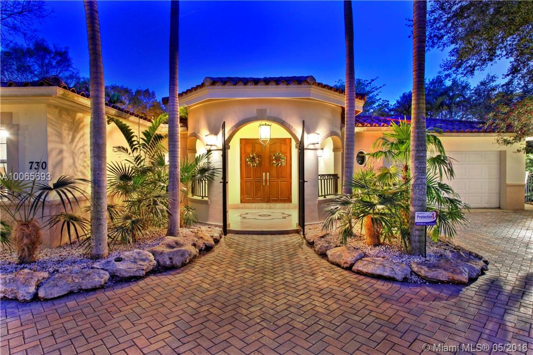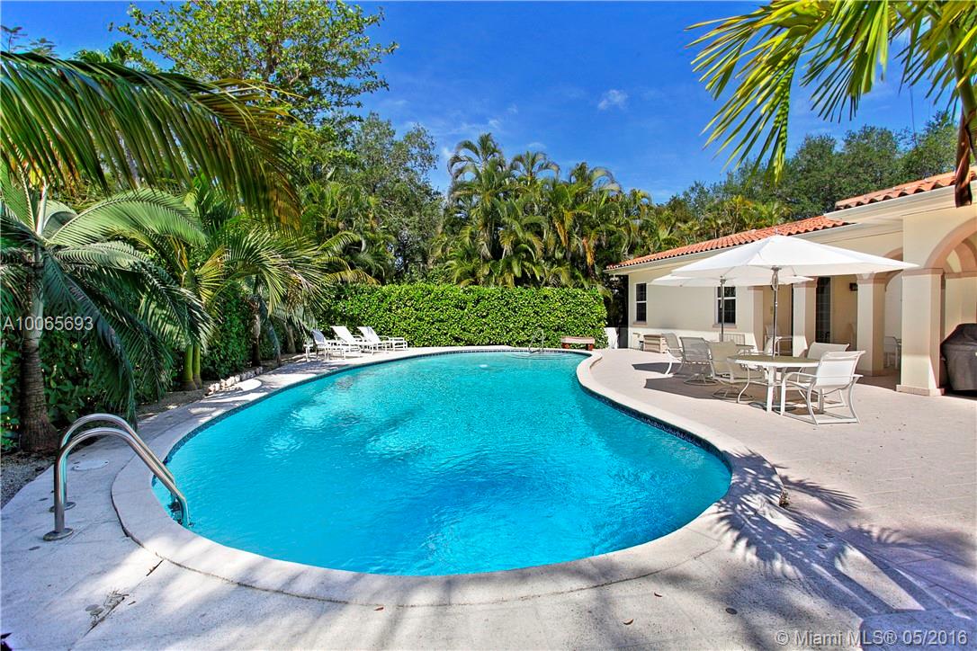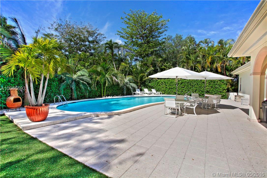 Completely renovated in 02, this home is ideally located in the Sunset school district. The stately entrance features wood beamed ceilings & leads to spacious formal living & dining areas. The kitchen is open to the sunny family room: a rare layout in the Gables! French doors from the fam & din rooms open onto the deep covered porch & lovely pool, giving you indoor/outdoor living options. Also overlooking the pool is the grand master w/ dressing area & beautiful bath. All of this on a gated corner lot.