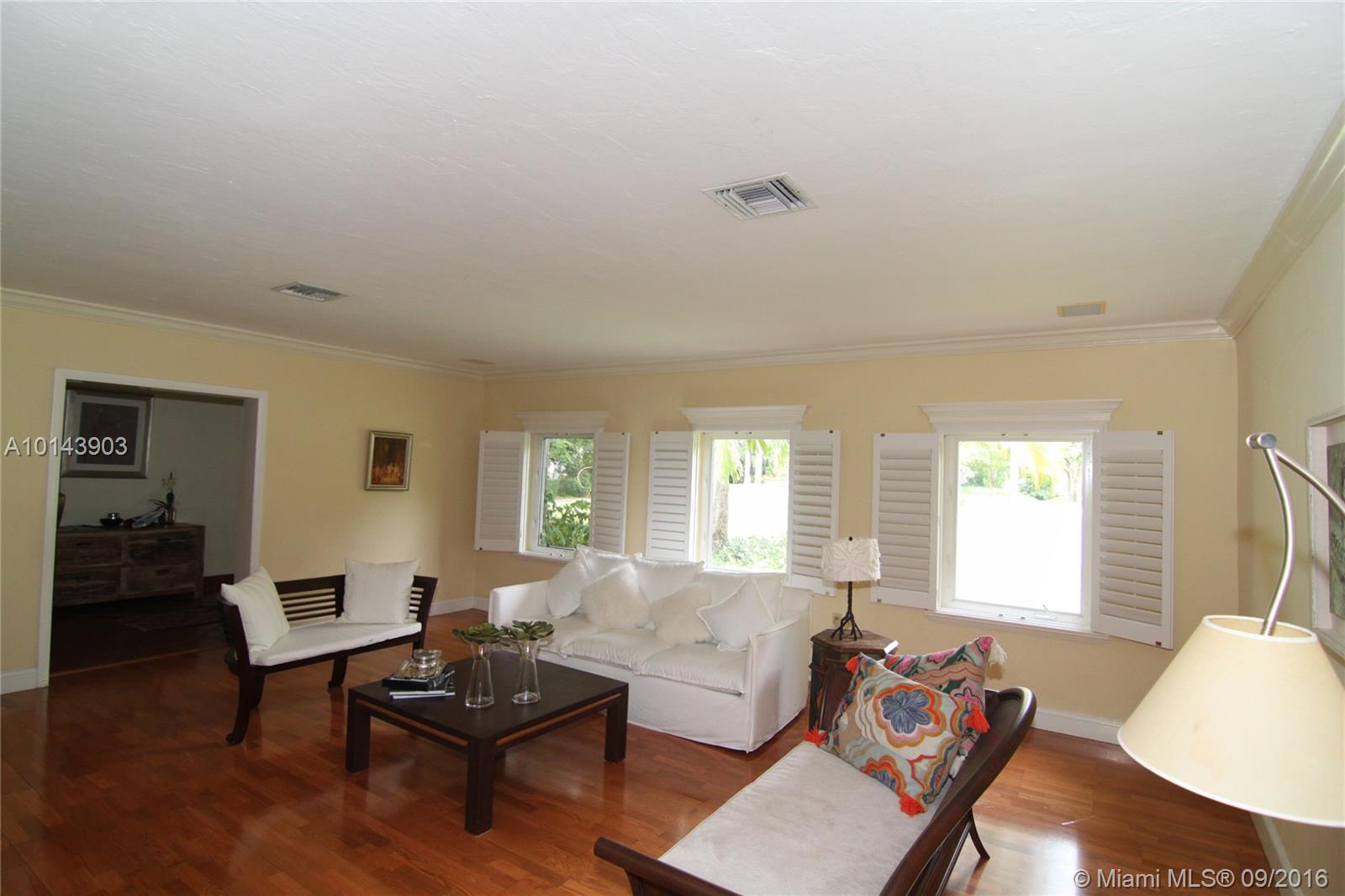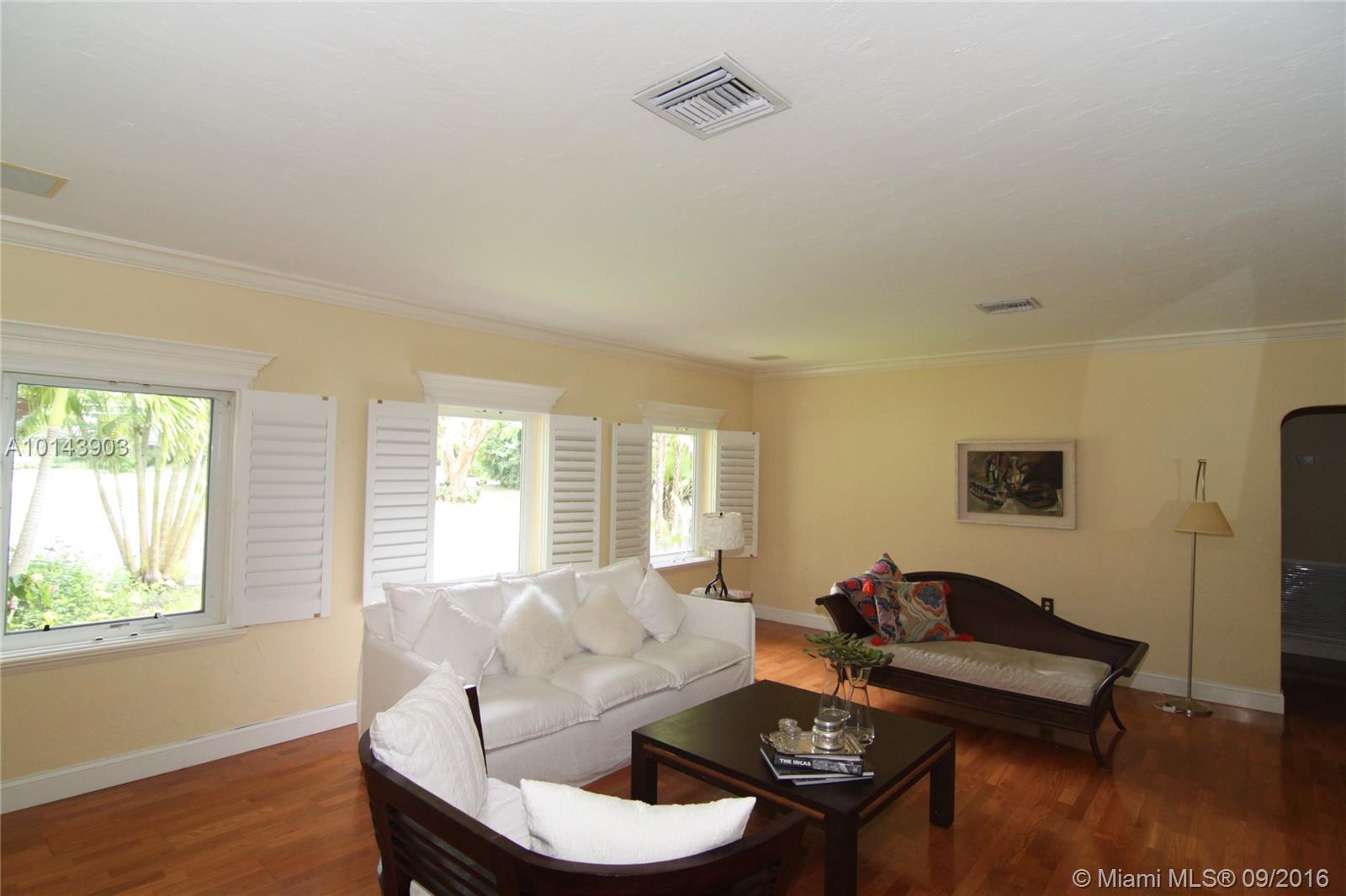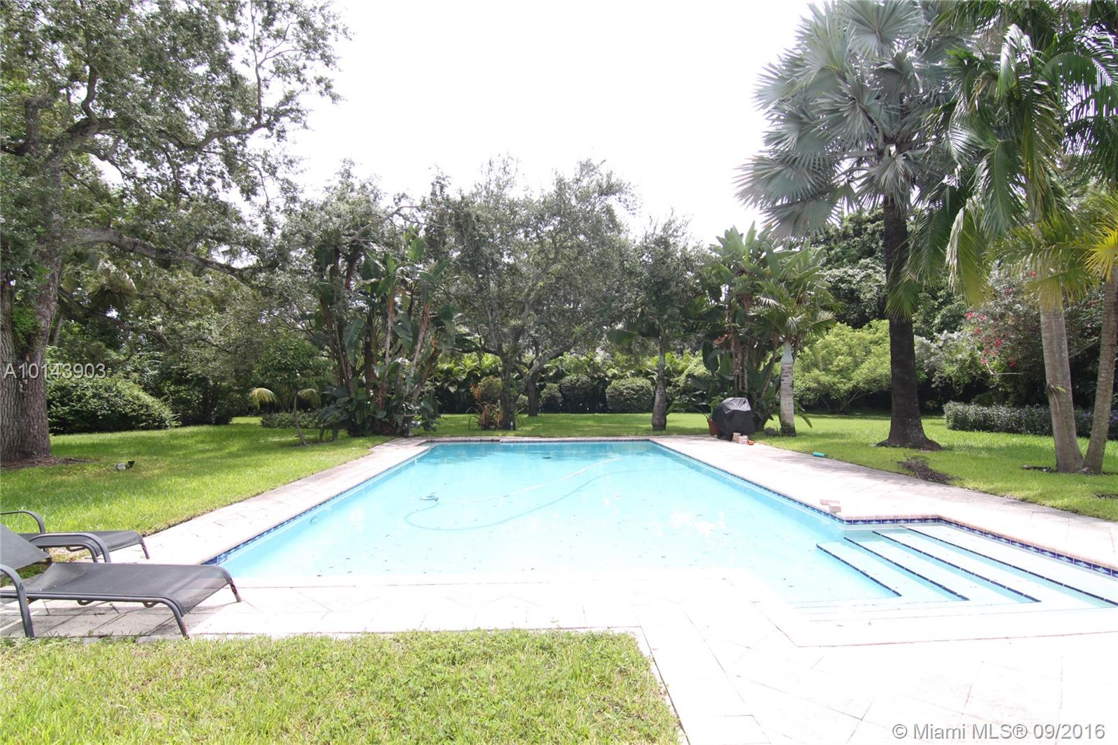 Great opportunity! Prime location on most desirable North Pinecrest street! Lush wide and deep oak laden acre (300 ft deep) Gorgeous, serene park-like setting with inviting open pool! Partially updated of over 4000 sf. New impact glass windows & doors! Split plan. Large master with vaulted ceiling & luxurious bath. Addl. den/office w/bath. Guest quarter. Large patio w/ skylights & bar! Property is being sold for nearly lot value (48,787 sf). Architect's renovation & expansion plans available. A must see!