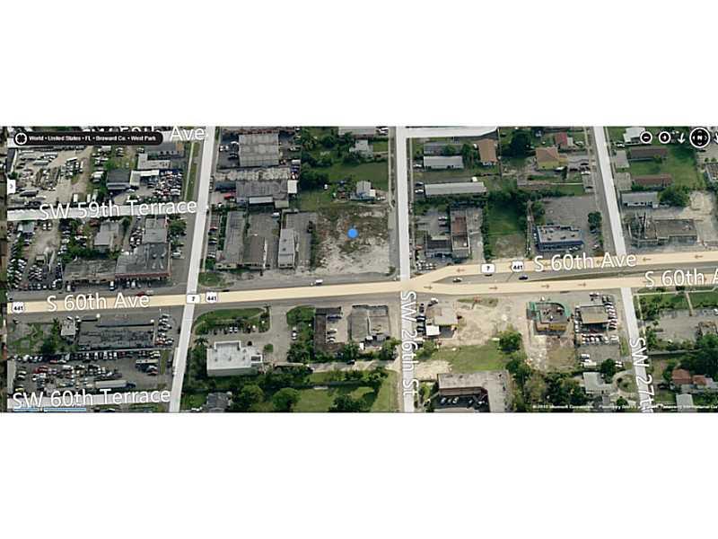 Looking for great exposure? Doesn't get better than this! .62 acres with 155 feet of frontage on 441 (State Road 7). Daily traffic count of more than 45,000. Corner lot with possible 2 means of egress. ~155 feet wide x ~190 feet deep. Developing area in W est Park, Florida. The property is zoned for Transit Oriented Corridor (TOC).