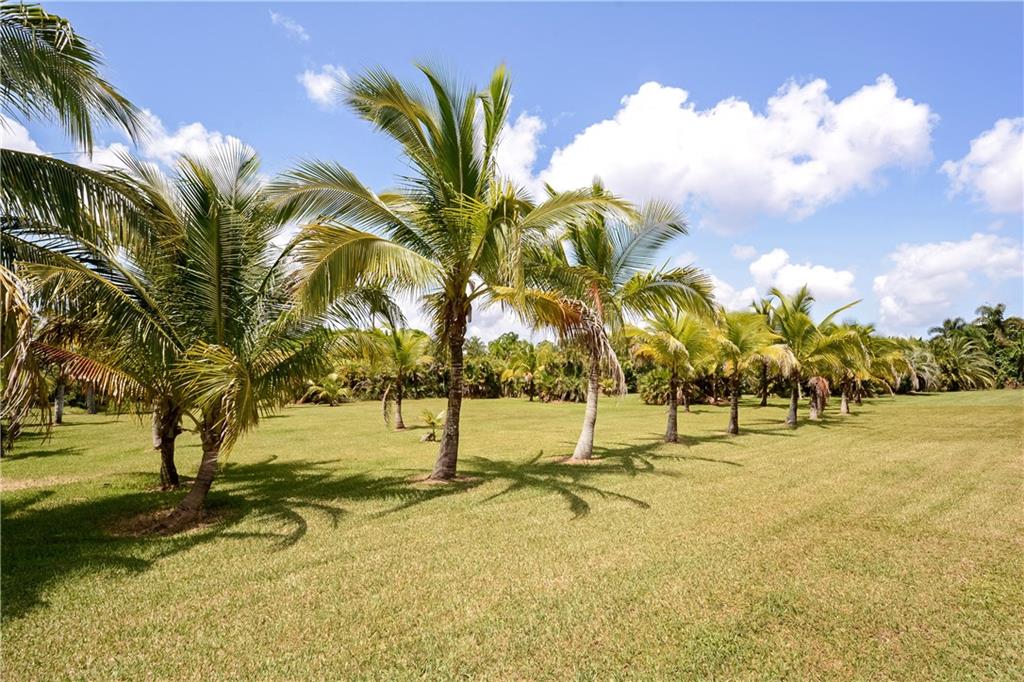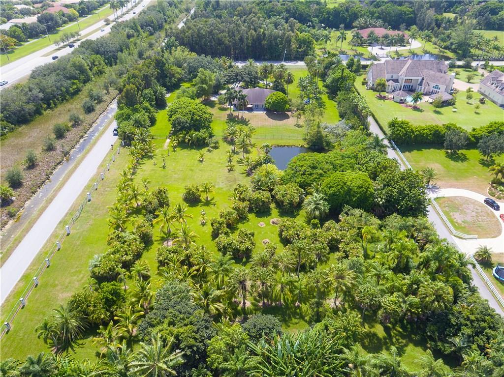 Magnificent tropical oasis. This one of a kind lot is one of the last few available in this prestigious neighborhood of Sunshine Ranches. Surrounded by multi-million dollar homes and ranches. This 2.03 acre lot offers gorgeous palm trees and has a stunning pond in the back. Property is fenced and includes architectural plans for an 8,000 square foot home. Build the home of your dreams!