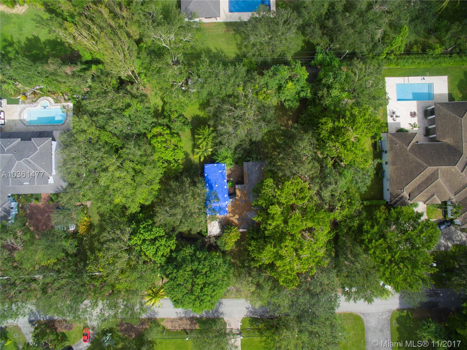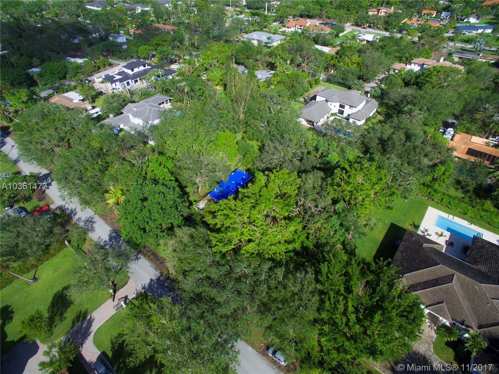 Pinecrest builder's acre on secluded street that does NOT go through to US1, so very limited traffic. Over 38,000 square feet of lot with an avocado and three mature (and delicious) mango trees. Working well for sprinkler system, municipal water source, septic for existing house. The home on the lot is an Alfred Browning Parker home, and may be a candidate for rehab. Lot is being offered as vacant land at land value, but affords an incredible opportunity to create a dream home just for your.