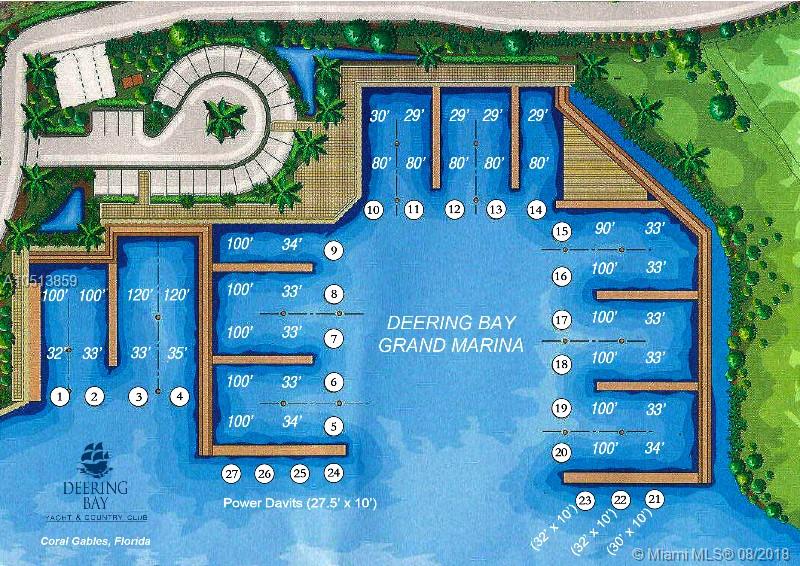 Terrific 100Ft Dock (Slip #19) in prestigious Deering Bay. Located in the Grand Marina which requires additional access and extra security. Full time Dockmaster. This is one of the most protected marinas in Miami-Dade. Includes concrete Finger Pier, easy access to the Bay with NO bridges and Deep Water Canal. This Slip is 100Ft deep with a 33Ft Wide. Also available for Rent at $2,750. Call LA for Showing Instructions.