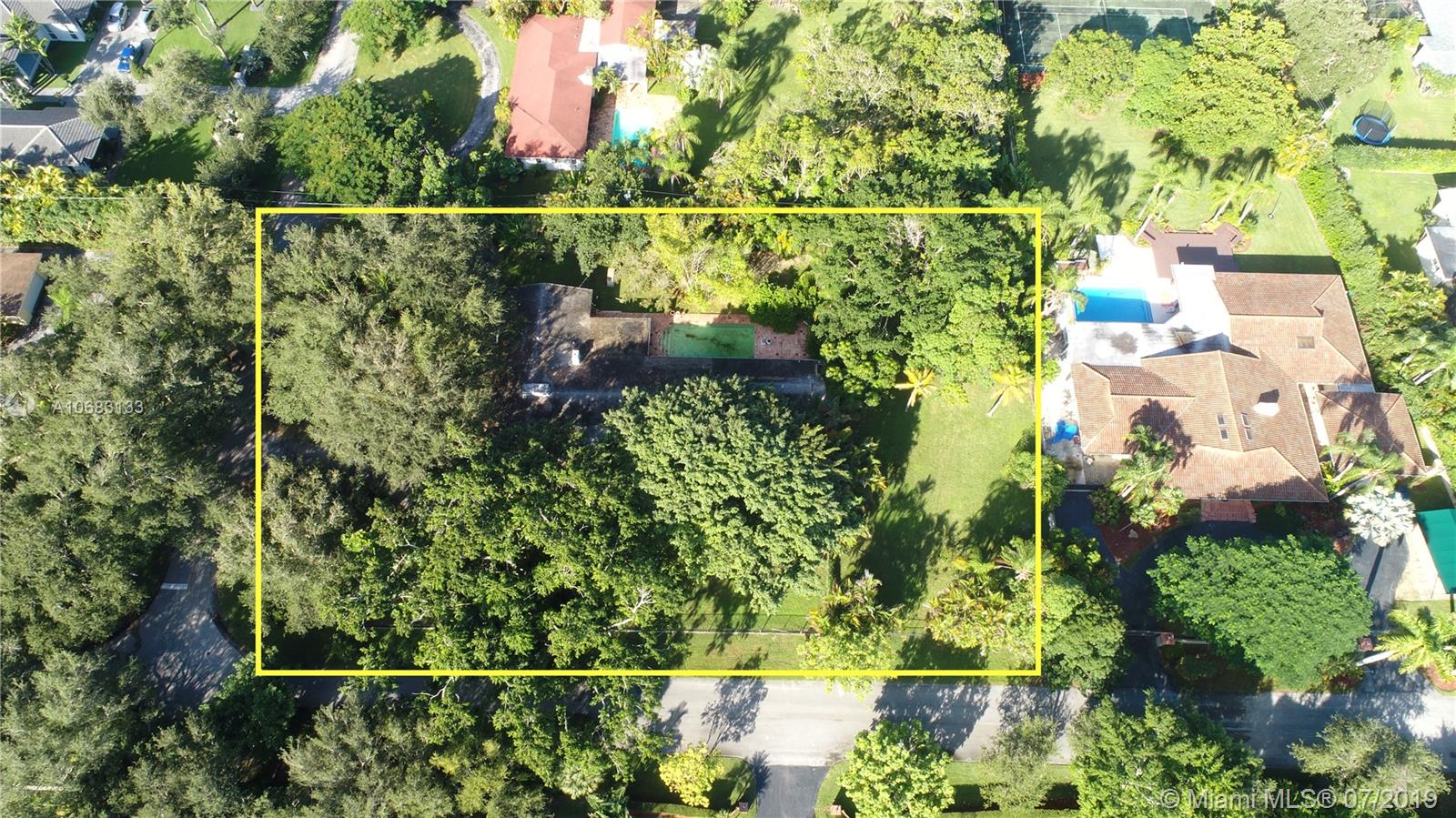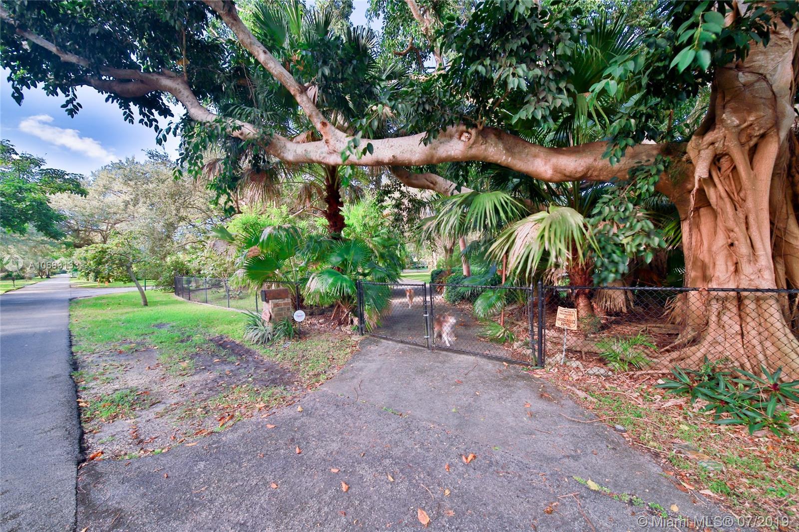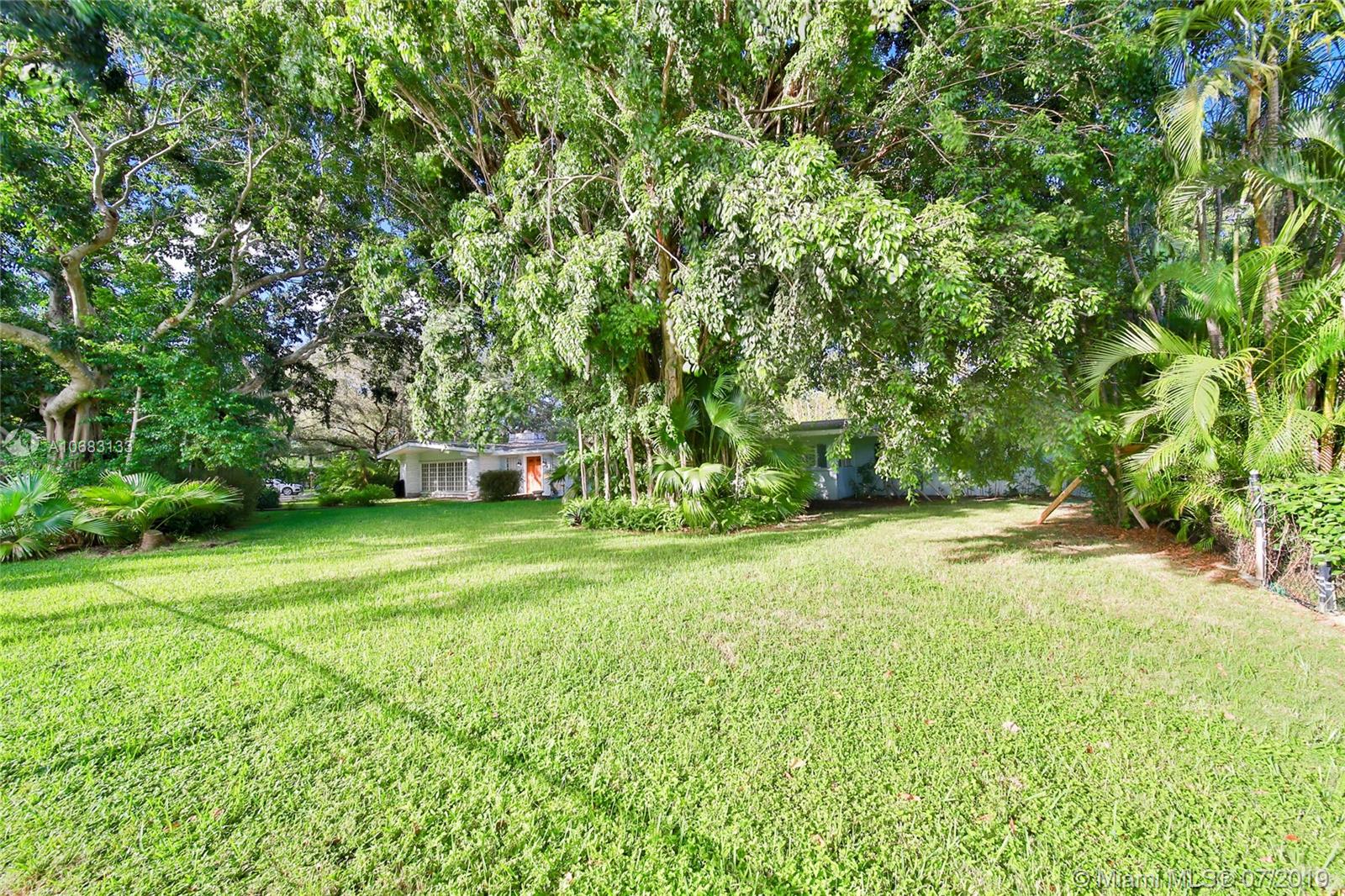 Incredible opportunity to remodel or build your dream home on this 40,946 SF corner lot! Located on a quiet street in prime Pinecrest, with indigenous tropical landscaping including mature avocado and mango trees. Surrounded by magical Banyan trees (they are believed to fulfill wishes!), the property offers plenty of opportunities for private shade. One of the only lots in the area connected to city water! The existing house is 3,548 SF, has working fireplace, an abundance of windows, an attached garage and a pool, plus there is room for a tennis or basketball court. There is a 25-KW Generator that can power the entire house for up to two weeks. Located in Zone X and away from the main roads, sits in the heart of Pinecrest and the finest private and public schools in Dade County.