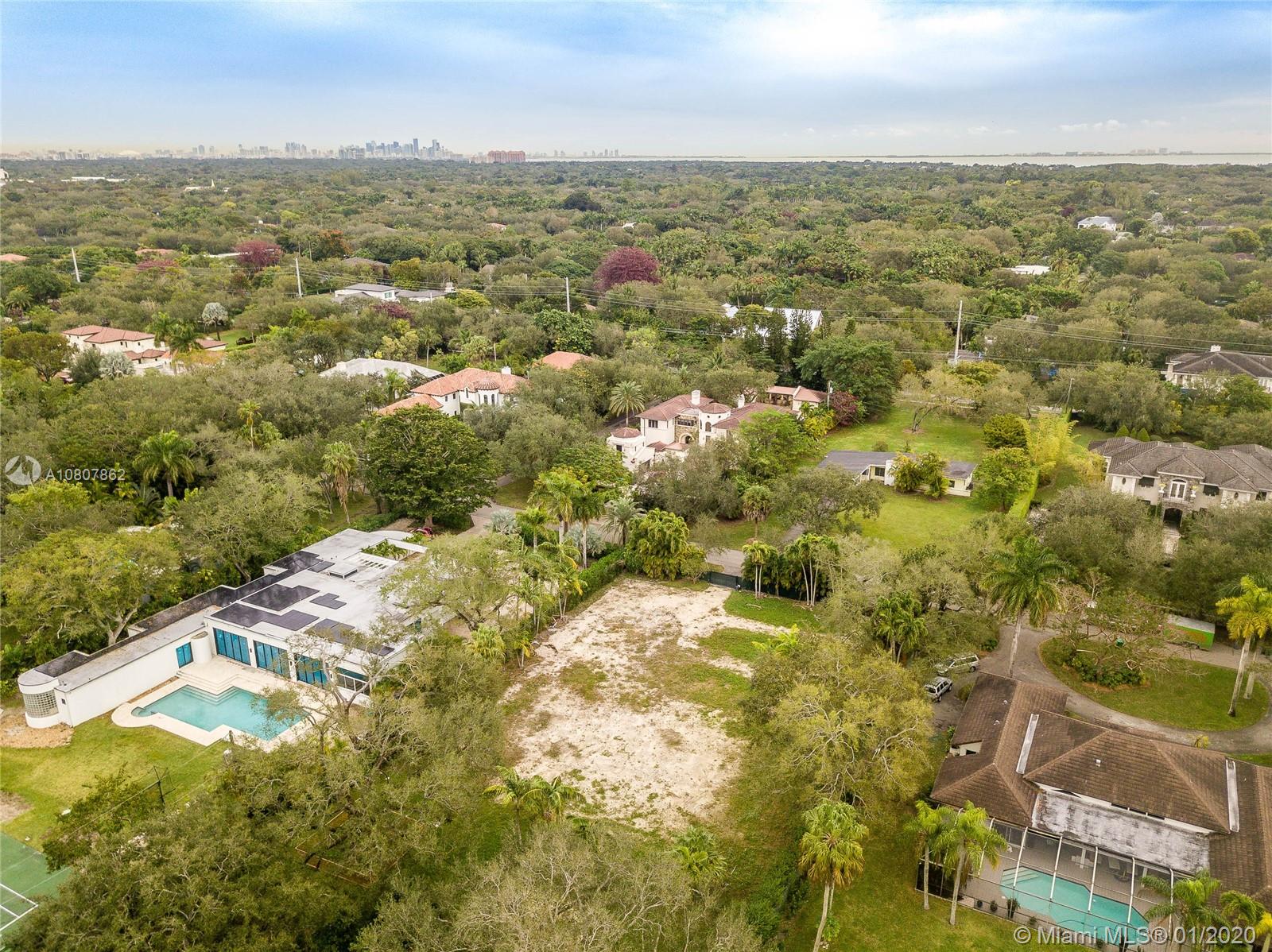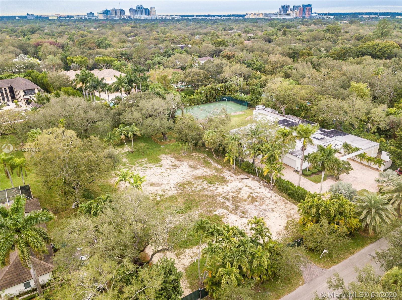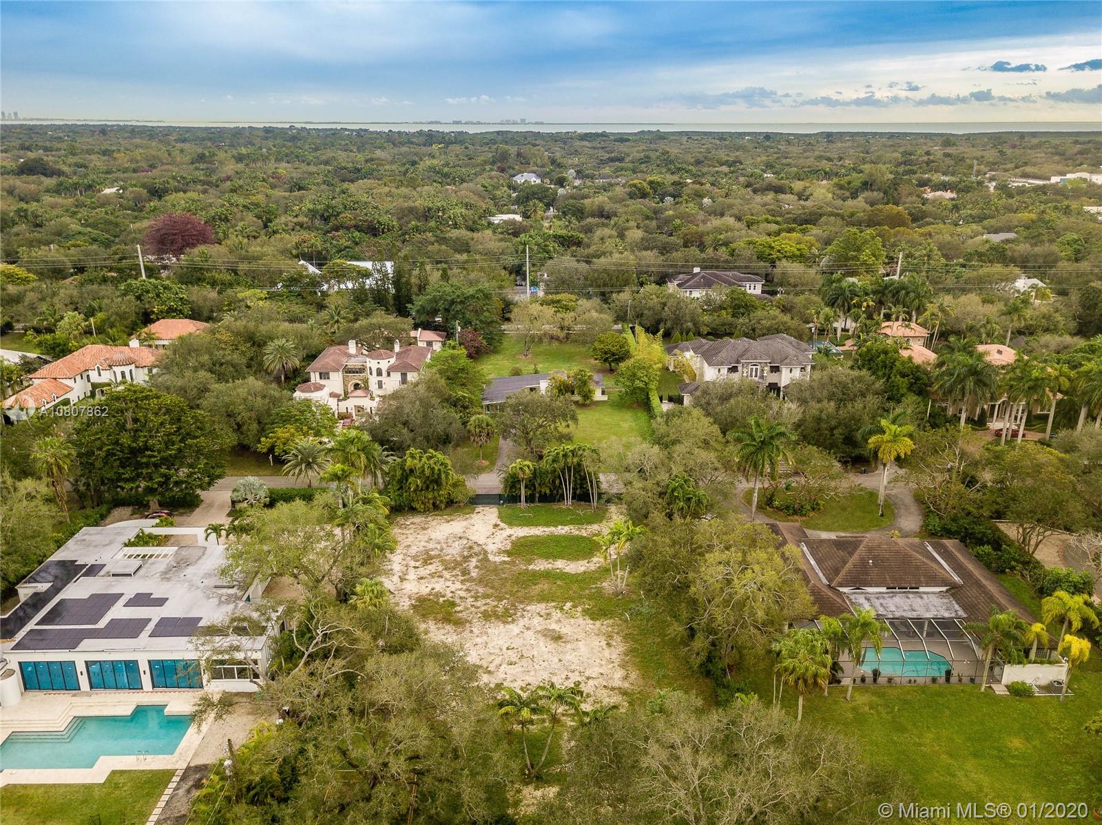 Opportunity to acquire prime north Pinecrest lot w/plans from esteemed architect David Johnson. Use existing plans or modify to your liking. Cleared lot w/no tree coverage in buildable areas. Plans call for 2-story Florida Vernacular-style estate with 7,519 square feet of living area. Most of the house orients on ground level w/downstairs master suite overlooking pool, cabana and yard. Seven bedrooms in total with upstairs comprising three en-suite bedrooms separated by a den/family room. U-shaped design captures beautiful pool vistas from every wing of the property. Cabana includes sauna and bathroom. Take advantage of all the time and expense invested into these custom plans on a prestigious lot with 131.77 feet. EU-1 zoning and in Flood Zone 'X'.