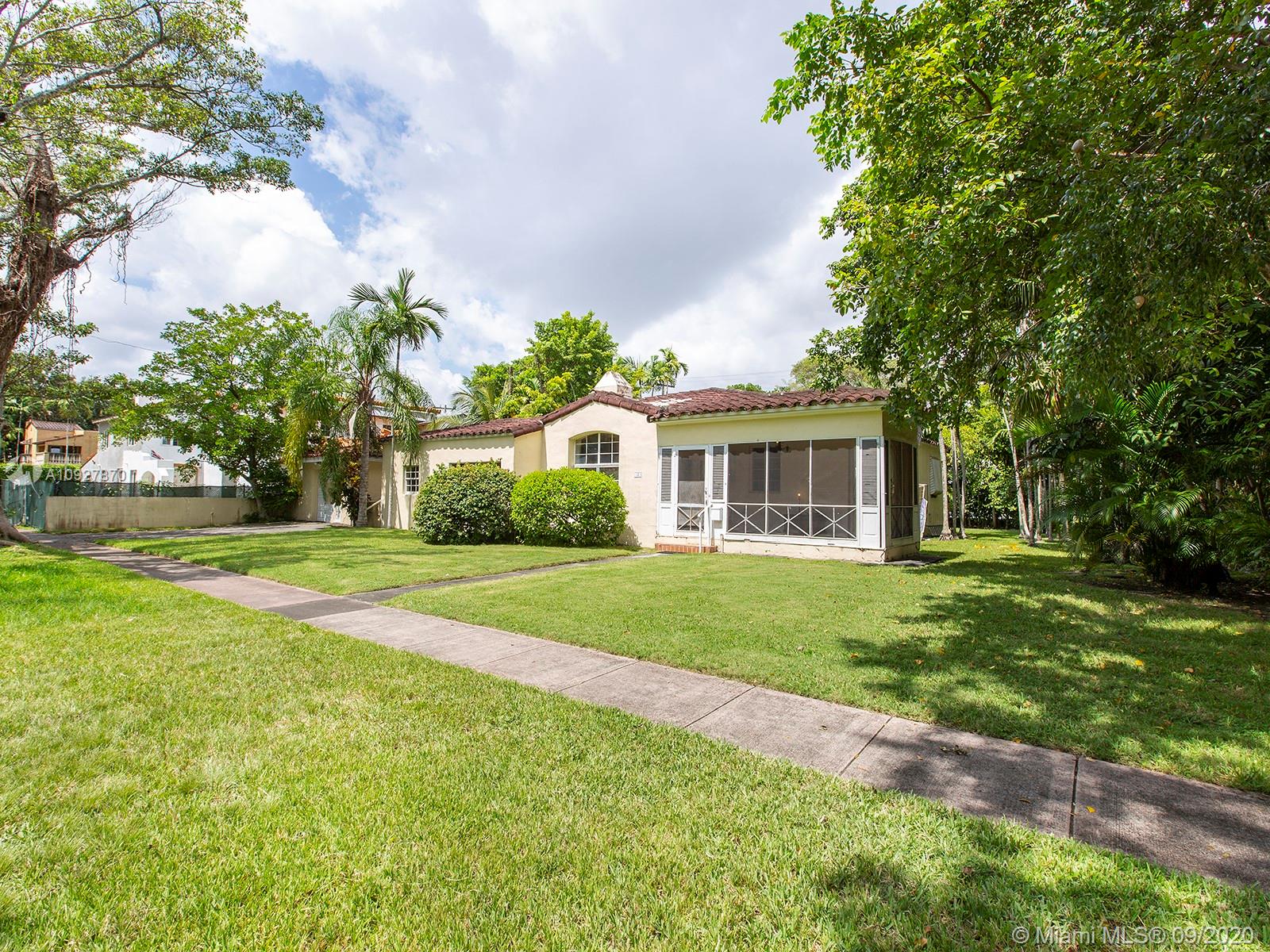 Located in the heart of the North Gables, this 2,038 square foot home sits on a large .26 acre lot. The existing home has 4 bedrooms, 3 full bathrooms and a floorplan primed for renovation. The 1936 home features a classic Coral Gables style Old Spanish façade, a large living room with a beautiful vaulted ceiling, a detached garage, and a large lot for expansion and a pool. In addition, this 11,300 square foot property is nestled on a quintessential Gables tree-lined street and is ideal for a custom home build. The home is not historically designated by the City of Coral Gables and is situated among large, newly-constructed homes. Located within walking distance of Miracle Mile and the Granada Golf Course, this property has one of the best locations in Miami.