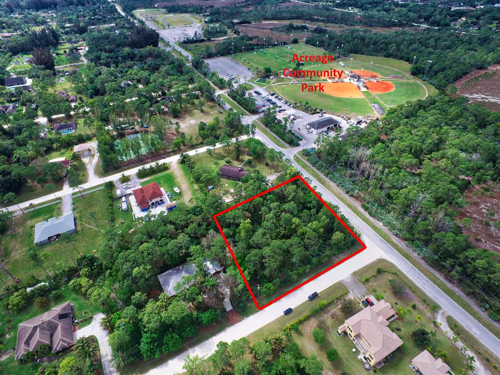 Oversized corner lot on a paved road in the heart of The Acreage. Close to Orange Blvd, just 1.75 miles to Seminole Pratt (grocery store, gas station, library and other stores) towards the city of Westlake, and 2.2 miles to Northlake Blvd. Across the street from the Acreage Community Park and Acreage Pines natural area.Unincorporated Palm Beach county, build to suit Agricultural Residential, bring your pets, boats, trucks, or start a garden and enjoy the space!