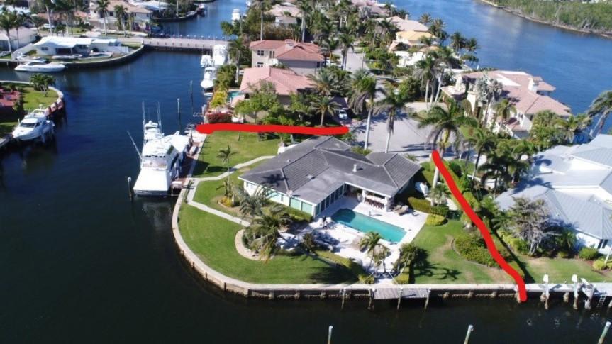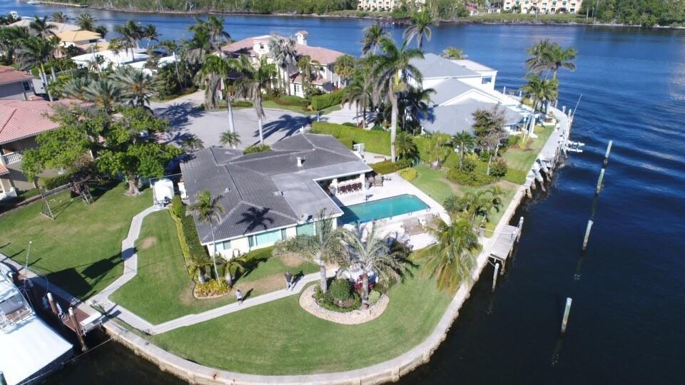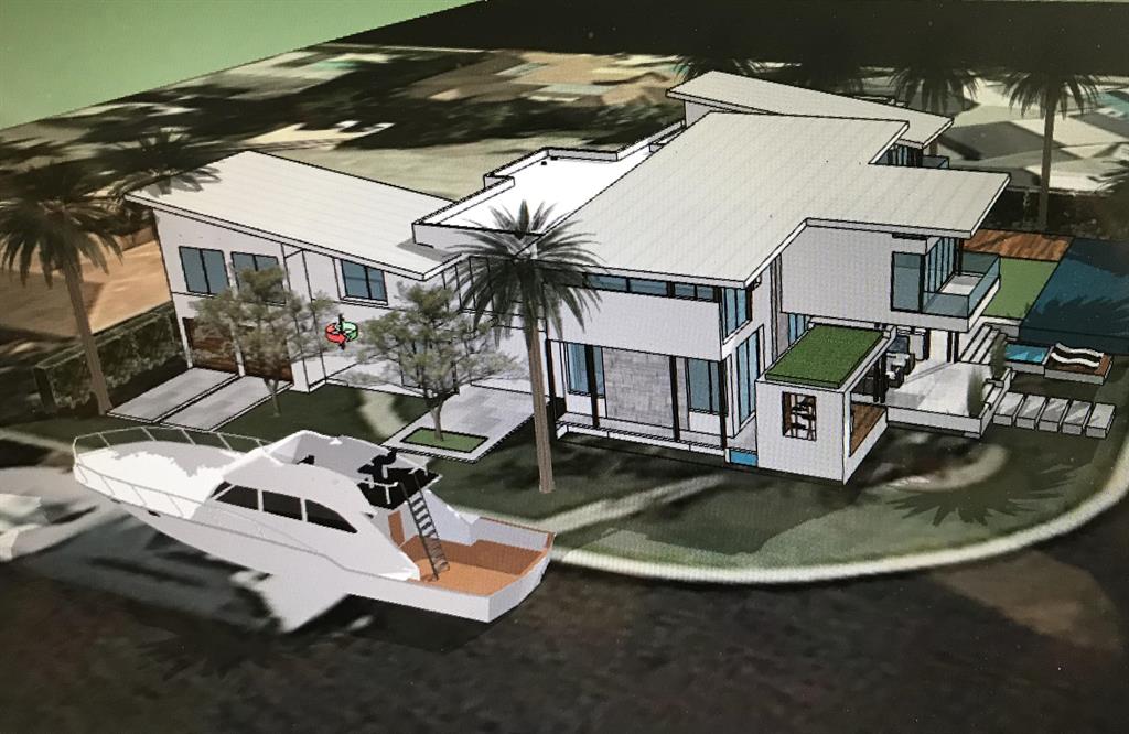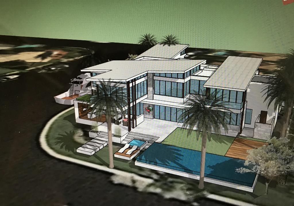 Offering Over 260 FT OF PRIME POINT WATER FRONT on BOCA HARBOUR ISLAND with both SOUTH and PROTECTED WEST DOCKAGE, Southwest inside POINT LOT one lot off Intercoastal waterway deep water property will appeal to the most discriminating yachter. This property will allow for an estate home in excess of 11,500 feet. There are several new estate homes currently under construction in this highly desirable island neighborhood. Renovate or build your dream home. Detailed design and full elevations by locally acclaimed architects for a new project created specifically for this lot are provided to the buyer. The design constitutes an 11,500+ ft estate with 8700+ ft under air, 6+ bedrooms + 8.5 baths with a 5 car garage bay doors capable of a true 10 car collection,fully gated