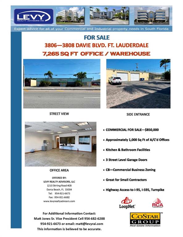 *For Sale Only*No Lease or Lease Option. Priced aggressively for a timely & fast Sale under 120 per sq ft. Owner motivated. Perfect for many type of contractors, landscapers, roofers, art studio, furniture storage. Ample Warehouse Storage and a small private fenced side lot. Vans will fit inside. Approx. 1,000 Sq Ft of Offices built out inside consisting of 1 Large Bullpen and 2 smaller offices. Kitchenette. 3 Grade level Garage Doors