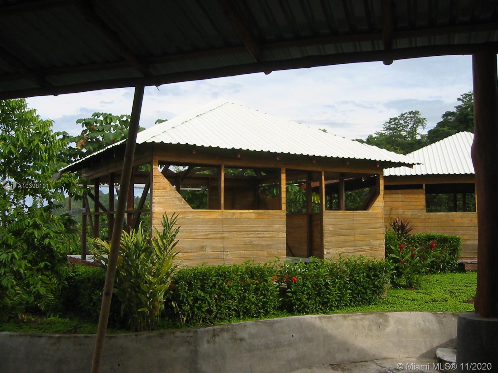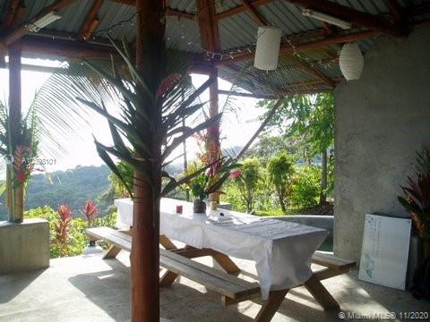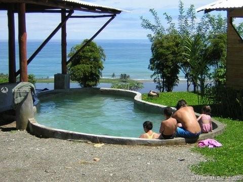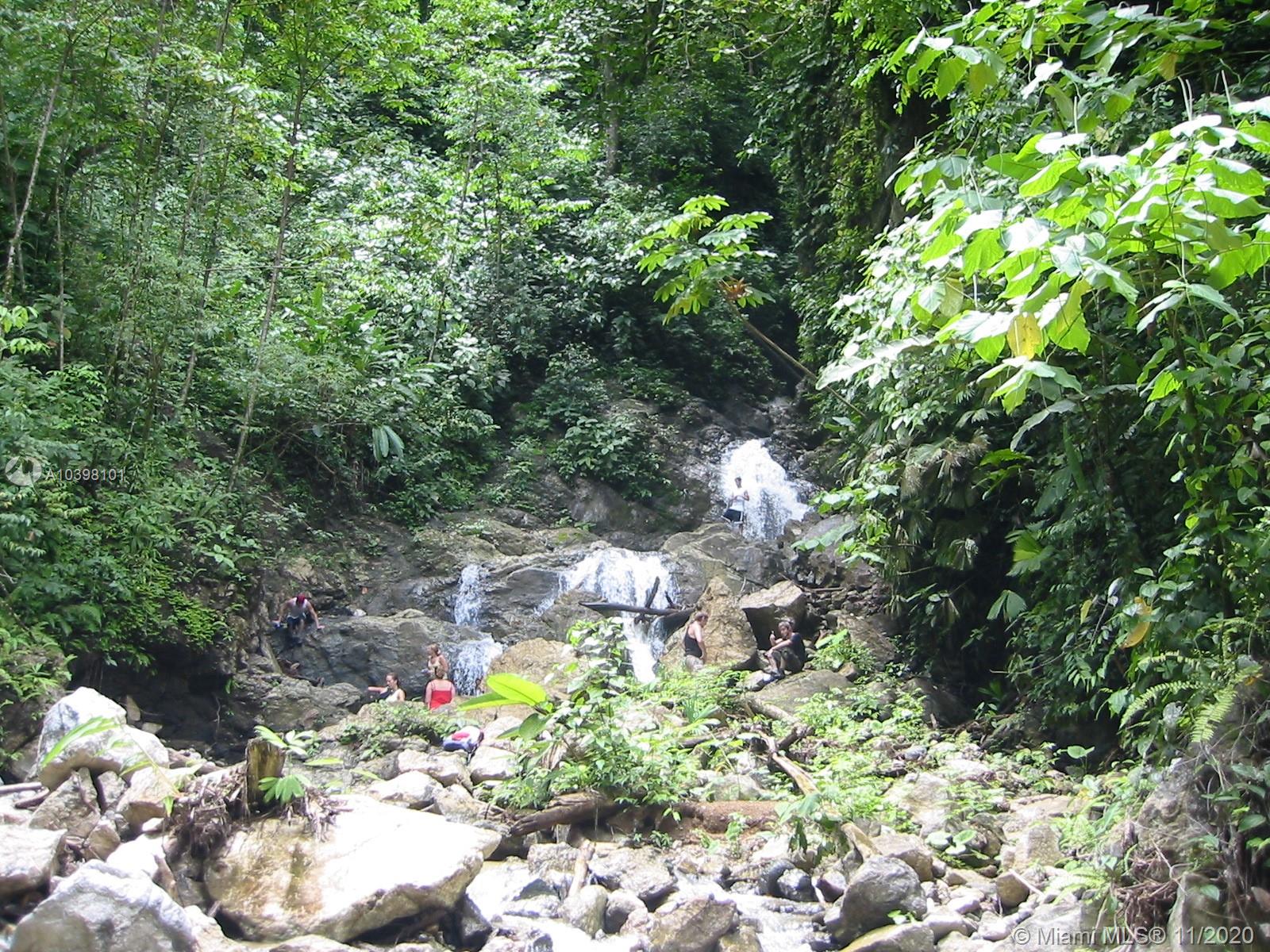 Oceanfront view from this 27 acres of rainforest mountainside in Carate adjacent to the famous Ecological Corcovado Park. With its own stream and waterfall, the property has 3 beautiful ridges for building, 300 degrees Ocean & mountain views and is 400 feet above the Pacific Ocean! By far, the most beautiful piece of land on the Osa’s Pacific shore. Situated on the property are a main lodge for dining and meeting with a kitchen and a small swimming pool. Accommodation consists of 2 native wood cabins with private porches and baths. Perfect for a large family, development, educational or religious programs, yoga retreat, ecolodge/bed and breakfast. The property has running water and generator. Stable temperatures and Ocean breezes. Walk down 15 minutes to the beach & to the local airport.