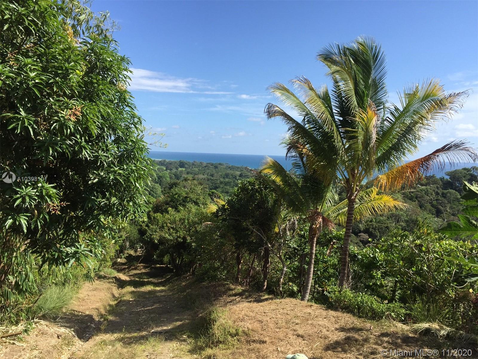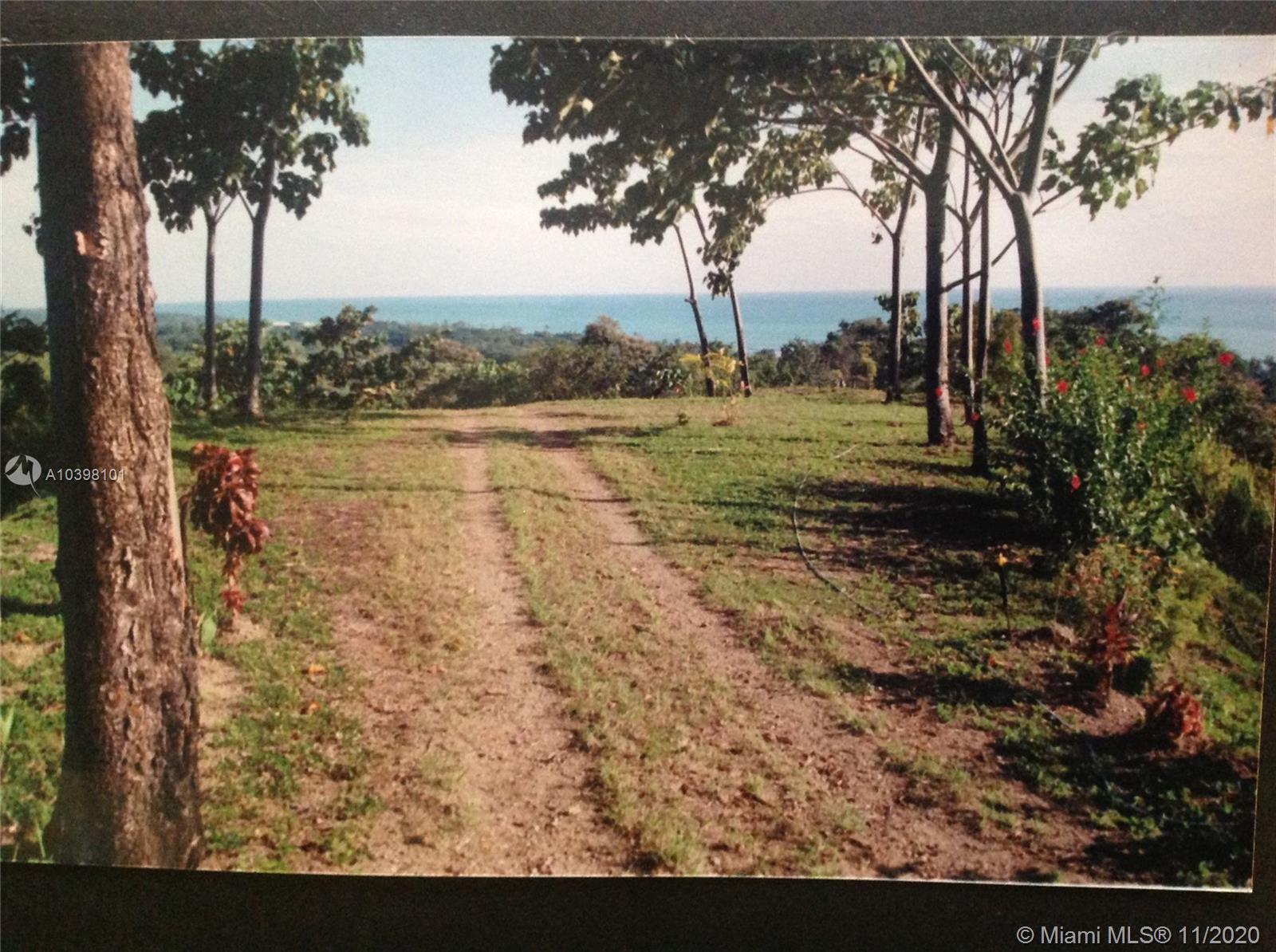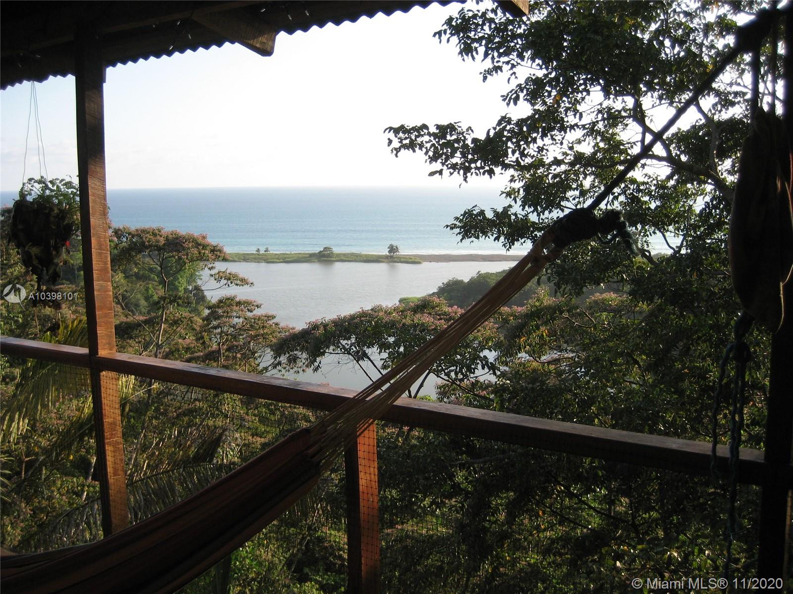 Oceanfront view from this 27 acres of rainforest mountainside in Carate adjacent to the famous Ecological Corcovado Park. With its own stream and waterfall, the property has 3 beautiful ridges for building, 300 degrees Ocean & mountain views and is 400 feet above the Pacific Ocean! By far, the most beautiful piece of land on the Osa’s Pacific shore. Situated on the property are a main lodge for dining and meeting with a kitchen and a small swimming pool. Accommodation consists of 2 native wood cabins with private porches and baths. Perfect for a large family, development, educational or religious programs, yoga retreat, ecolodge/bed and breakfast. The property has running water and generator. Stable temperatures and Ocean breezes. Walk down 15 minutes to the beach & to the local airport.