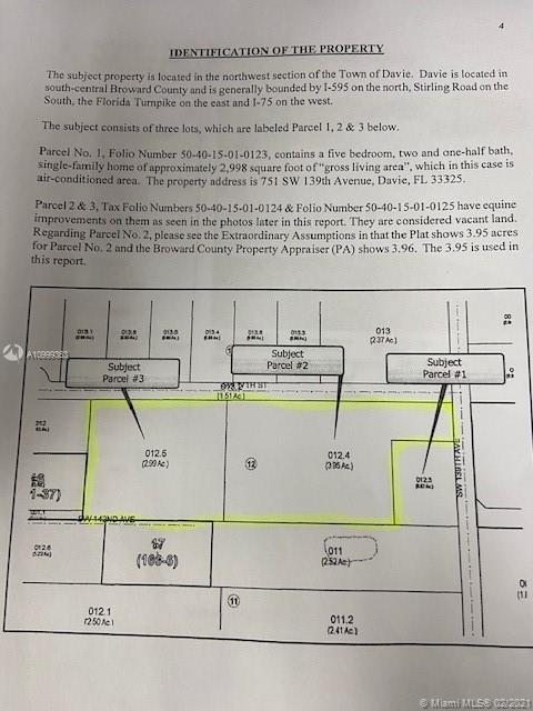 Developer's Dream in Davie, Florida! The correct address is 1751 SW 139 Ave in Davie Equestrian Estate Area 6.94 Acres 2 Folios:Parcel Two: 50-40-15-01-0124 and Parcel Three: 50-40-15-01-01-25 ***Note*** The home on Parcel One is Not included in the sale