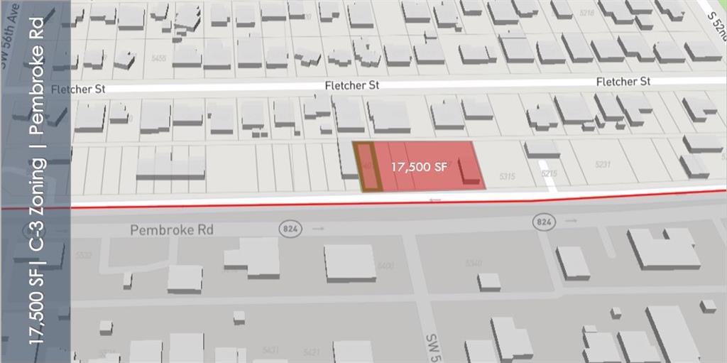 J U S T R E – P R I C E D 7 contiguous lots (17,500 ft.²) price at an unbelievable $27 per SF with C3 zoning. Owner may consider holding a purchase money 2nd mortgage. The property’s prime location near I-95, 411 and the Turnpike make it accessible to all areas of South Florida. The properties also close to the Fort Lauderdale Hollywood International Airport and Port Everglades and is minutes to the Dade County. Zoning will allow for the following usage: commercial, retail, mixed-use, hotel/motel, office, pain management clinic, place of worship, gas station and daycare (special exception required for the last 2). This exceptional location provides 175 feet of direct exposure on a major artery, Pembroke Road.