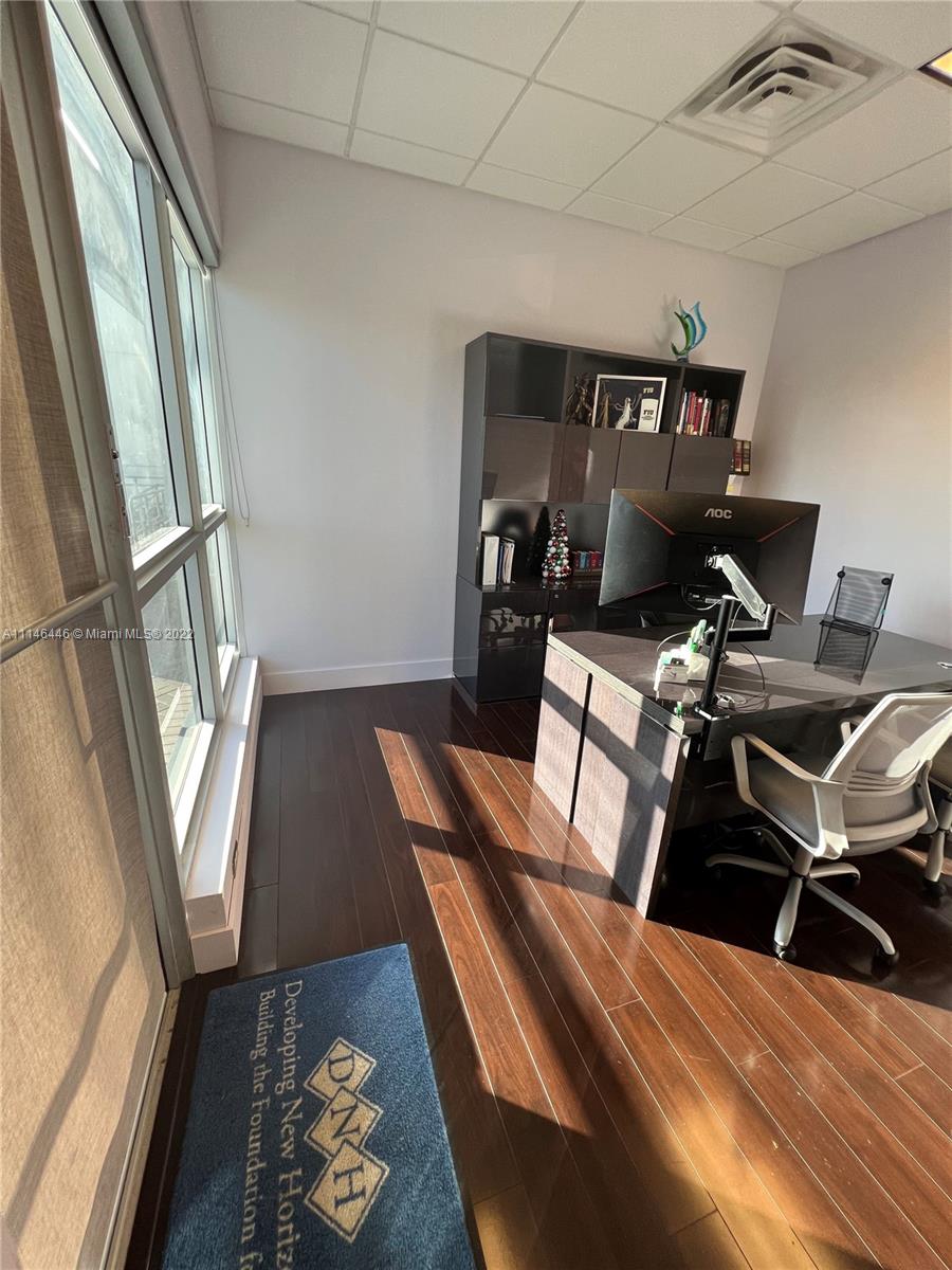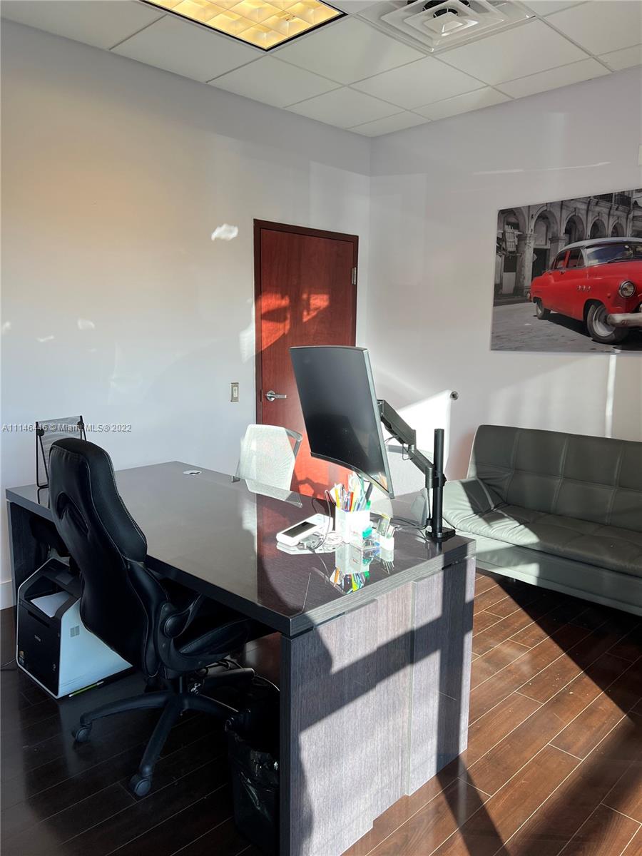 Great location within 1 mile of Walmart, palmetto, turnpike and 836. It's a great space with double entrance. Only 1 of 3 offices on the left wing with store front entrance of internal building entrance as well. Contains a front office and a rear office/conference room with a kitchen area.