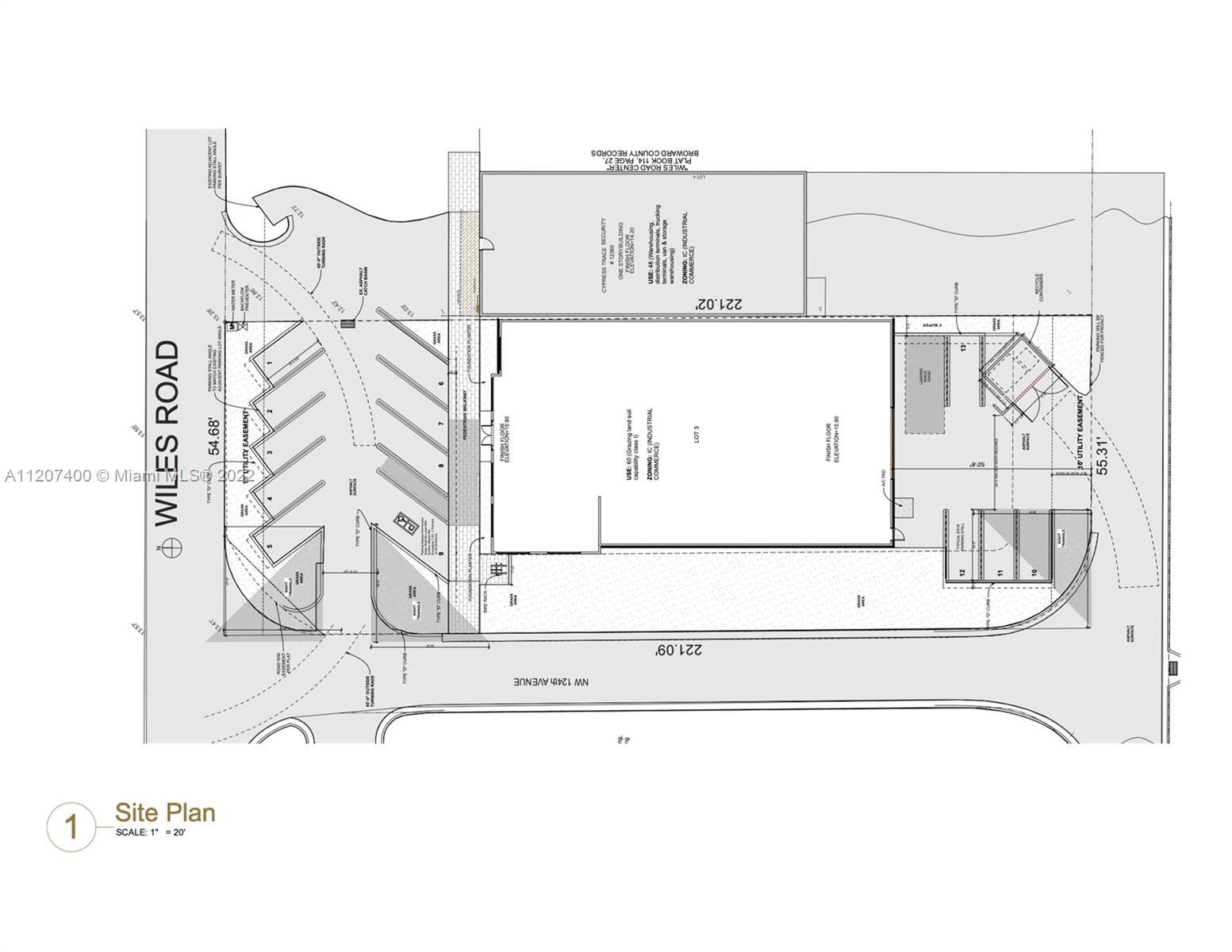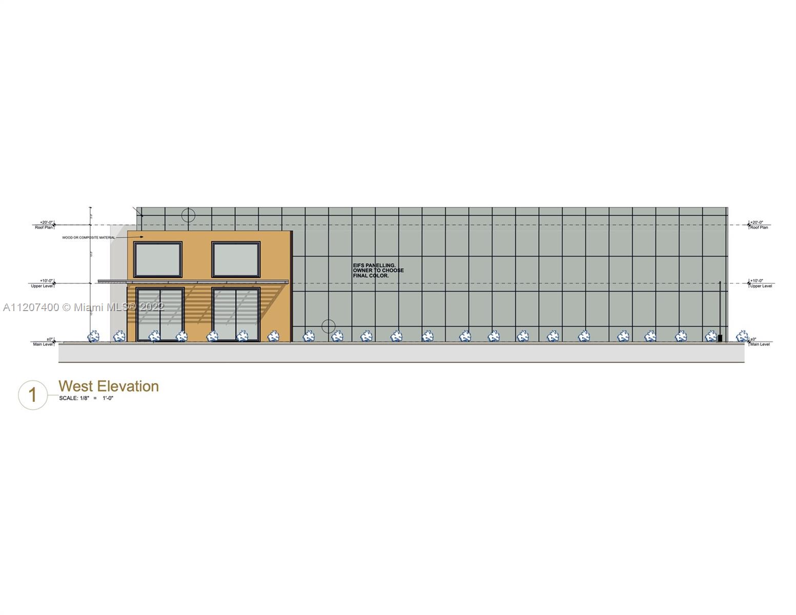 SITE PLAN APPROVED - Pre-Fabricated Steel building. 7,560 SF Interior. Exterior clad with finished corrugated metal panels that align to be continuous with roof. The building has been designed to house a showroom, conference room, office, kitchen, 2 ADA compliant bathrooms and a warehouse. The building will have a 2nd story mezzanine that will be used for storage. All openings indicated will be large missile impact rated windows and doors as approved by Miami-Dade standards. Parking is provided to comply with city requirements. The scope of work will include normal mechanical, electrical and plumbing. Flooring will be of a polished concrete throughout, except for the 2nd floor storage. That will be of a finished material. Ample vegetation is provided to comply with all city requirements.