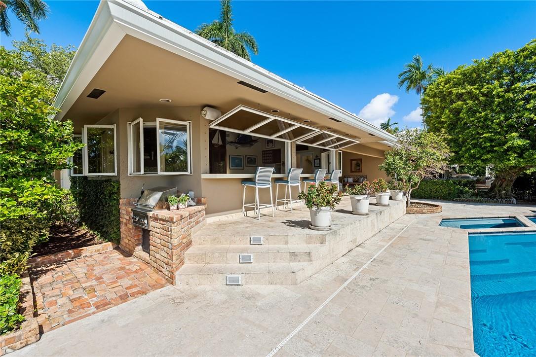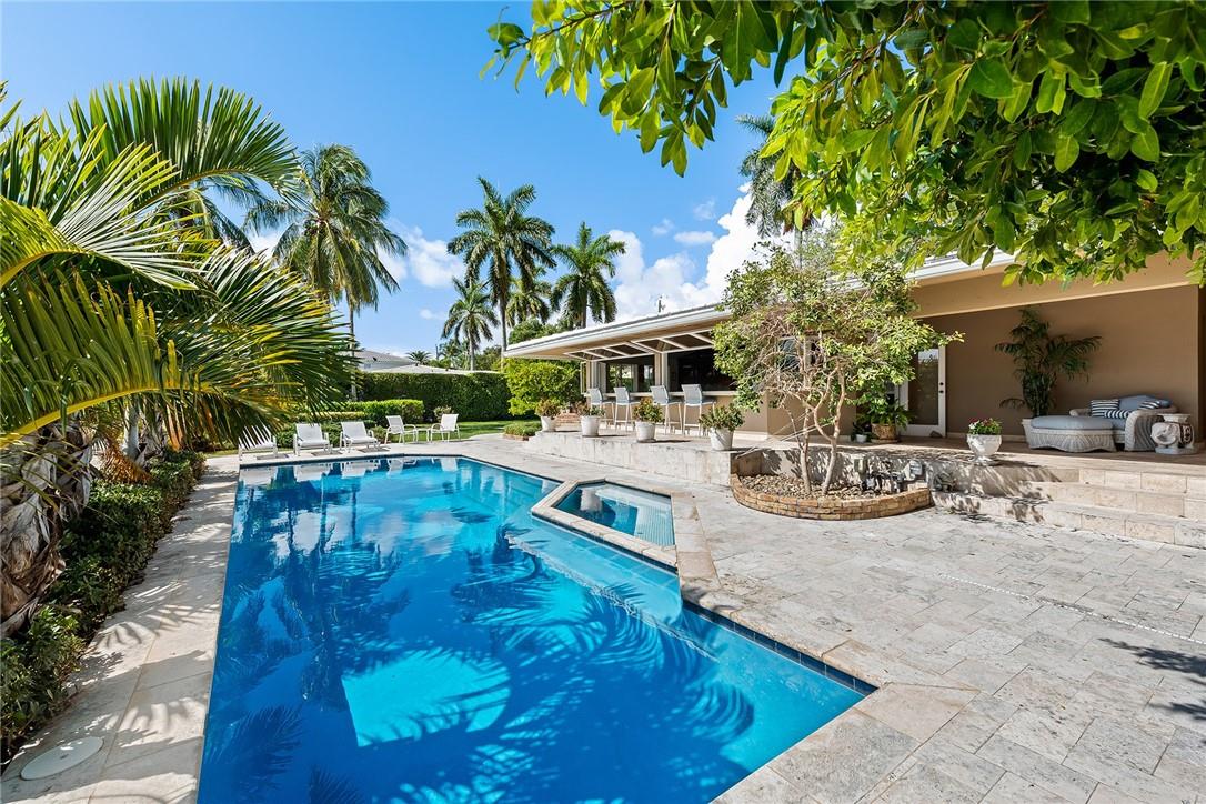 RARE opportunity to own one of the last dividable 200' lots in Las Olas. Have the option to BUILD YOUR DREAM HOME/S. SPRAWLING classic Florida waterfront estate offering 200'WF /direct ocean access (2boat lifts). Features include 4 ensuite bedrooms w sumptuous master suite on 2nd floor overlooking the extensive grounds. Grand living room w gorgeous pecky cypress vaulted ceilings; formal dining room, family room. office/den & amazing billiard/entertainment w/wetbar and icemaker overlooking pool and patio area. Full Cabana bath. Lush tropical landscaping. Amazing covered patios line the back of the house to enjoy every minute of South Florida living. Gated access to south garage (4 cars plus work shop & storage) plus additional one car garage on the north side of home