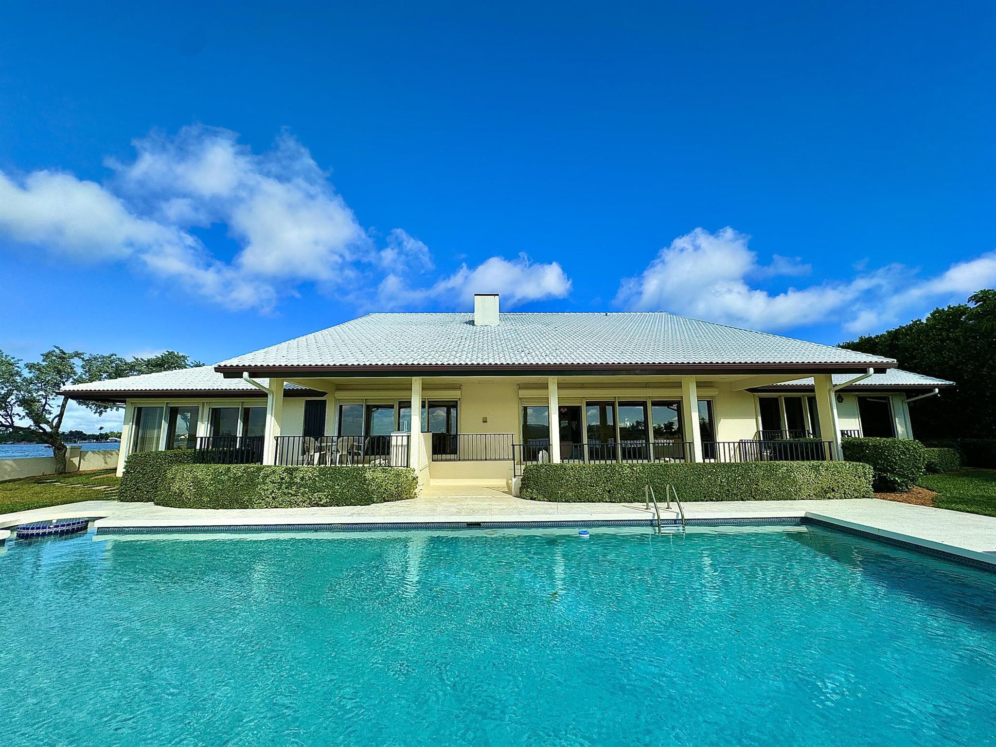 First time on the market in generations! This one-of-a-kind southwest facing point lot features dramatic, wide views of the Intracoastal waterway and the Palm Beach Par 3 golf course. Designer ready contemporary home situated on over half an acre with 4 bedrooms, 5 bathrooms, 1 powder room, and soaring ceilings. Spectacular outdoor spaces with covered loggia, large patio, and waterfront pool. Excellent opportunity to renovate and make it your own or start fresh and build new on this unique waterfront lot in Ibis Isle.