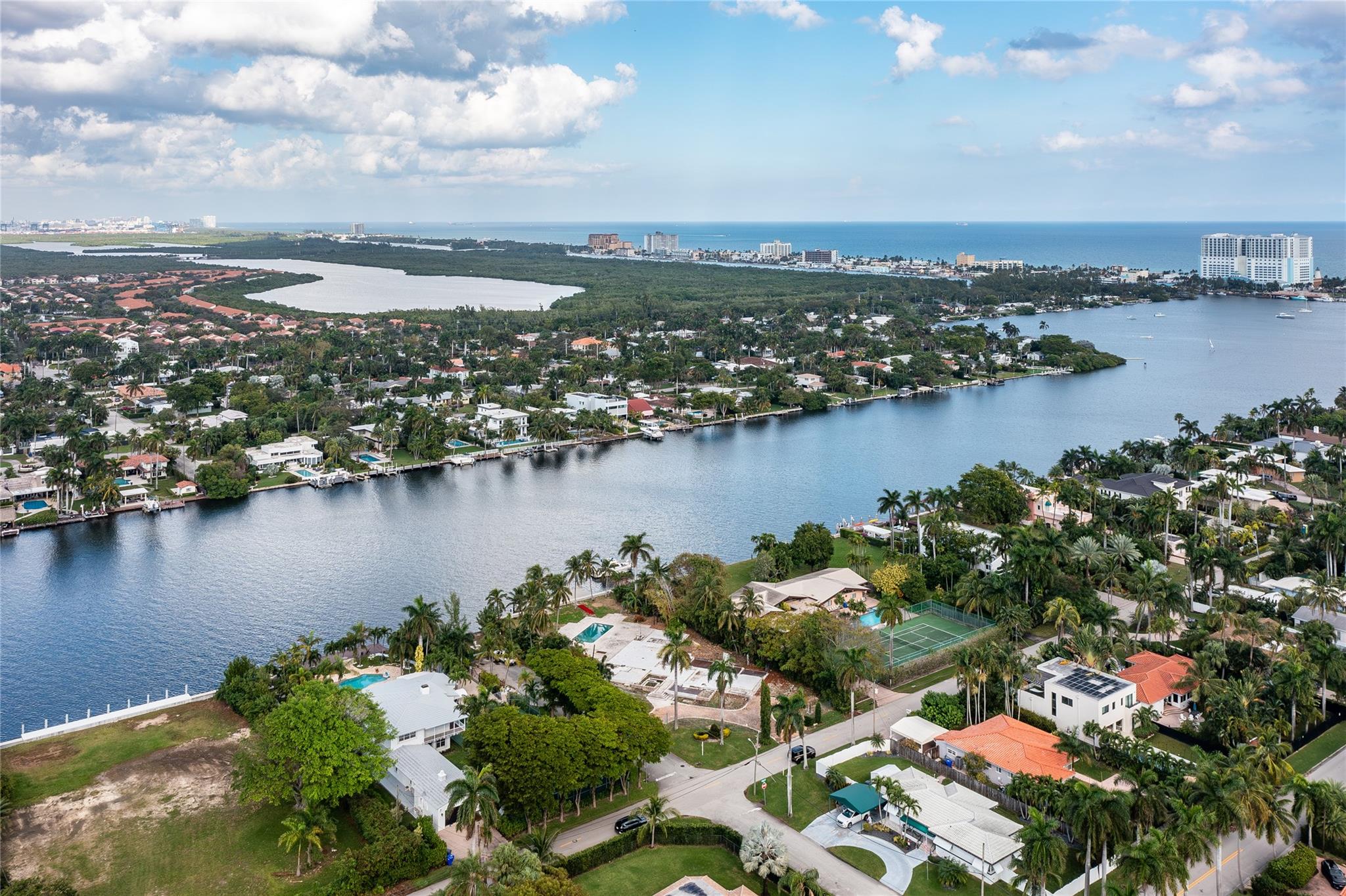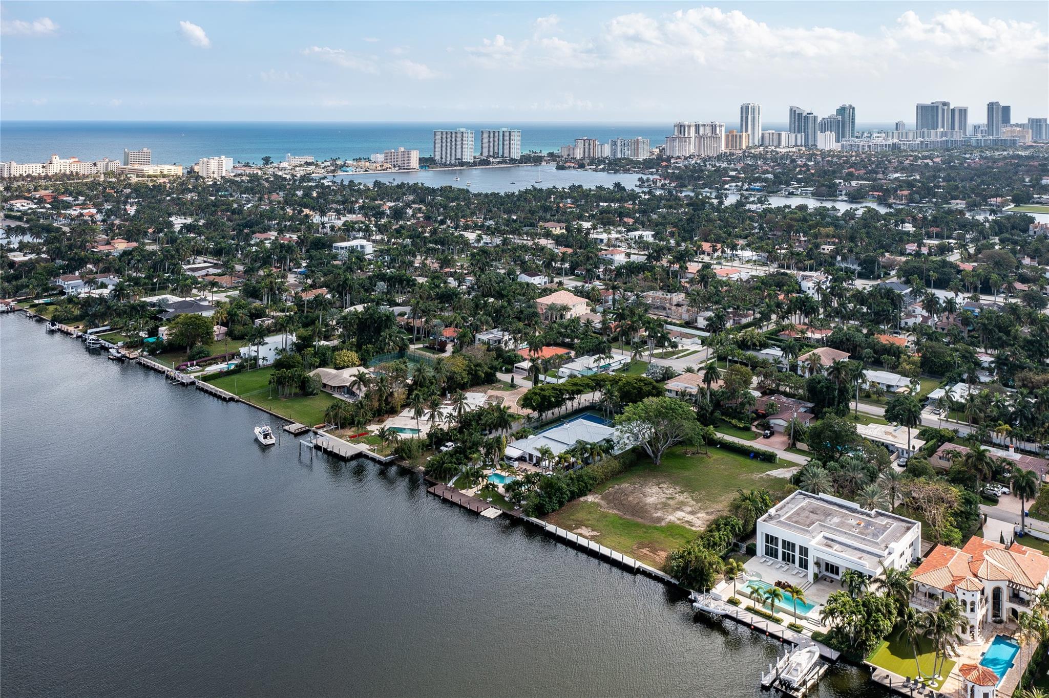 Discover the perfect canvas for your water front dreams. This buildable lot with plans included boasts 100 ft of intracoastal frontage, a refreshing breeze, and panoramic views. The new seawall exceeds NAVD88 requirements, ensuring durability and resilience. The brand-new state of the art dock is complete with a new 33,000lbs boat lift as well as jet ski lift and offers seamless access to the ocean. Here you will also find modern convenience with digital controls for Wi-Fi and lights, allowing you to customize your waterfront experience. Enhance your evenings with enchanting underwater lights. With electricity and water already extended to the dock, imagine the ease of coastal living. This corner lot, spanning 233 ft deep provides a unique opportunity to craft your coastal masterpiece.