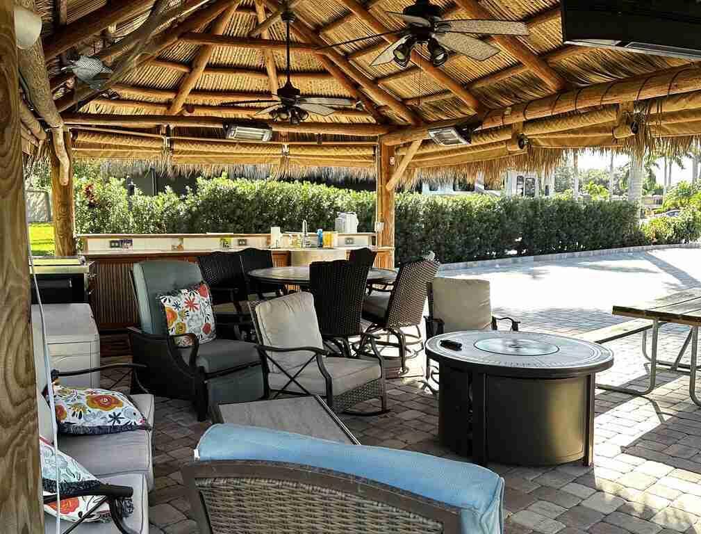 Motorcoach Resort St. Lucie West. Large pavered lot with updated large tiki with extensions (21) and added roll up shades with eisenglass. Plenty of room for the largest Class A motorcoach, vehicles and golf carts. Large outdoor kitchen bar seating, heaters, ceiling fans. This lot has easy access to rear exit of the resort, north pool/spa, laundry and dog wash. Minute walk to the dog park. Located in the Motorcoach Resorts St Lucie West - a class A only resort. Amenities include 18 hole golf, pickleball, pools, spas, tennis, clubhouse, onsite manager with endless activities and social calendar and more! Currently in the rental program.