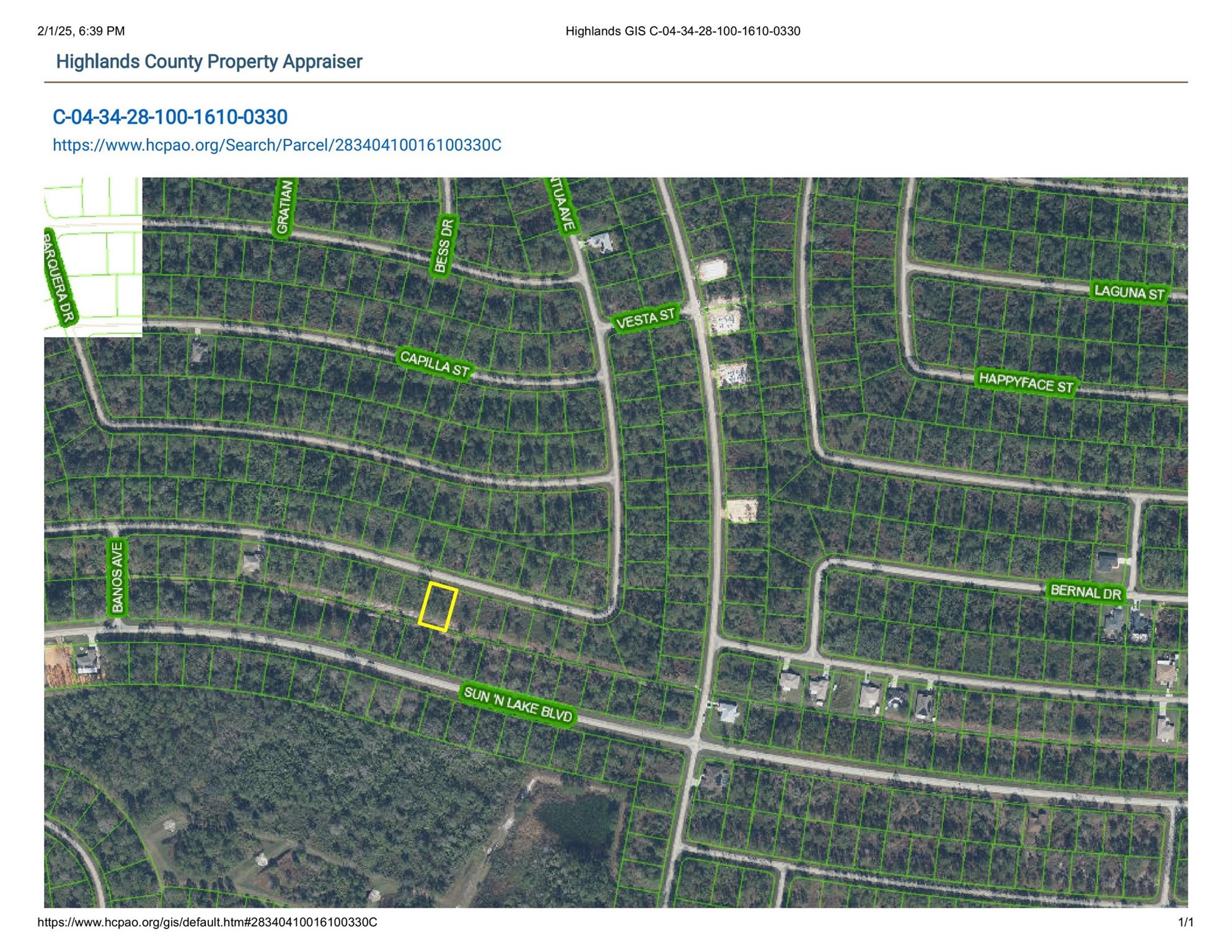 RARELY AVAILABLE .25 ACRE LOT JUST OFF SUN N LAKE BOULEVARD AND 1 BLOCK AWAY FROM THE STATE PRESERVE. PARCEL IS READY FOR ANY BUILDER TO COME IN AND GET STARTED RIGHT AWAY. LAND HAS BEEN STAKED AND SURVEYED, IT SITS ON A HIGHER LEVEL TO AVOID FLOODING, ELECTRIC IS ALREADY INSTALLED ON THE BLOCK, AND IT HAS BEEN CLEARED OUT EXCEPT FOR A FEW TREES THAT YOU MAY WANT TO KEEP. SAVE TIME AND MONEY. SUN N LAKES IS ONE OF THE FASTEST GROWING COMMUNITIES IN HIGHLANDS COUNTY. OWNER FINANCING AVAILABLE.