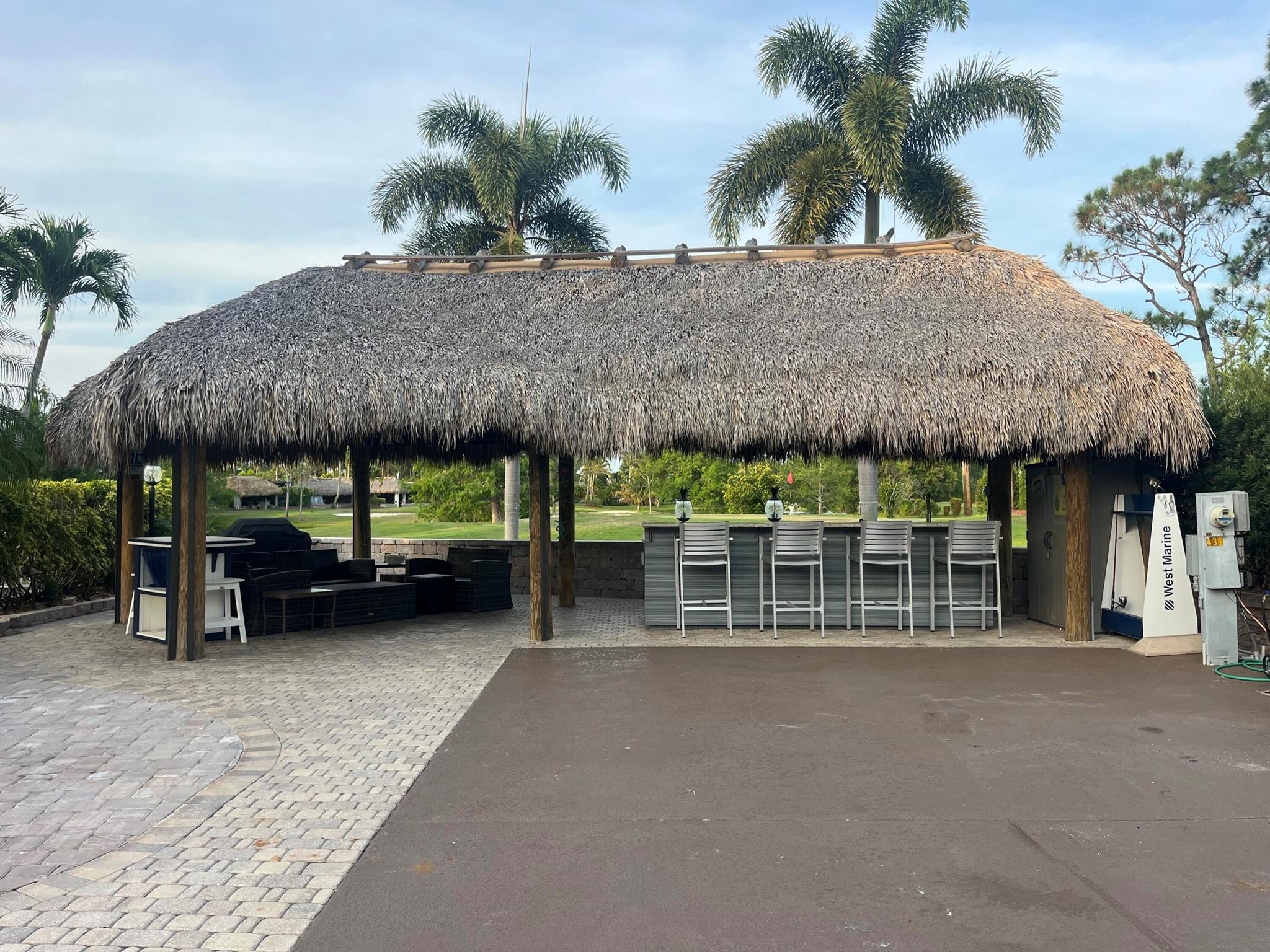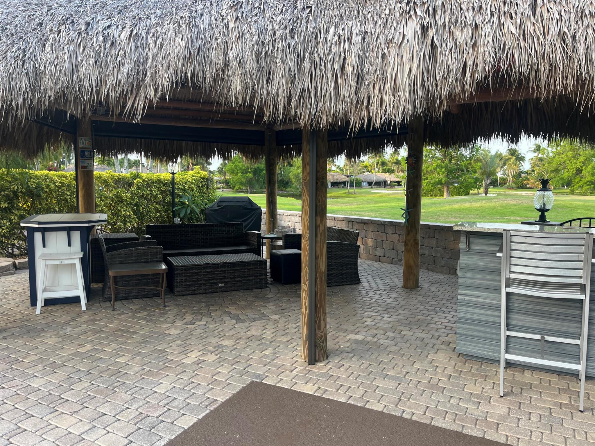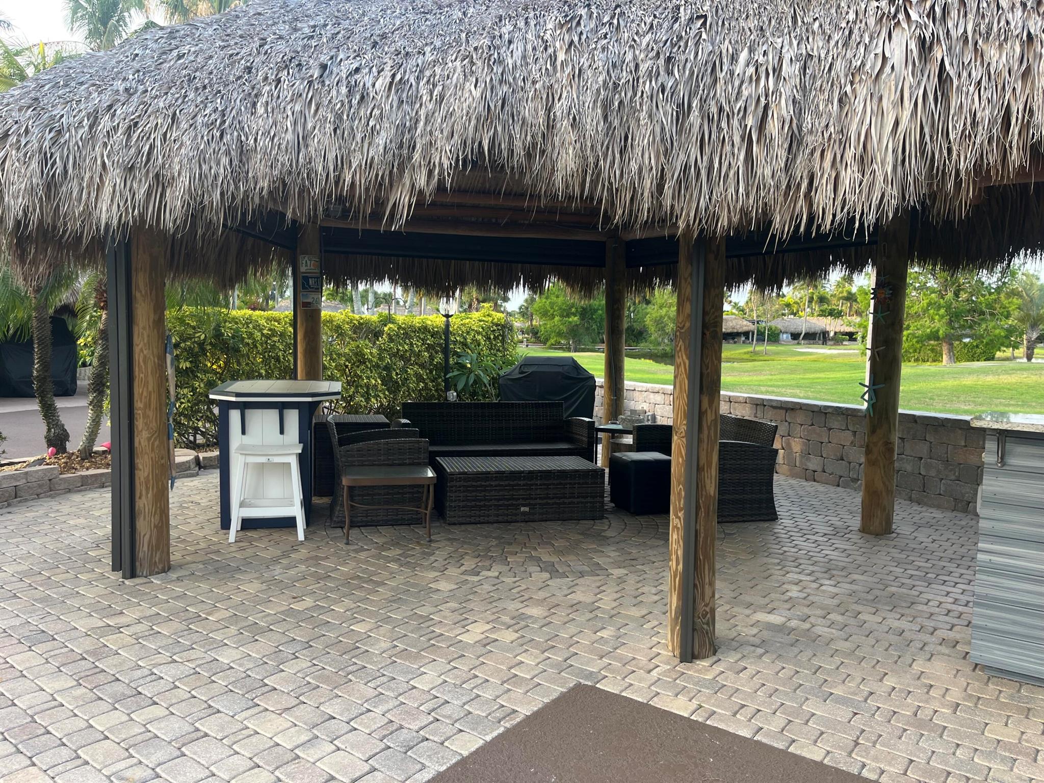 Beautiful lot in Motor Coach Resort Luxury Park , This lot is newly updated with bar granite counter top, sink , fridge and plenty of storage , large newly built tiki, beautiful landscaping to enjoy backs to a golf course private lot , plenty of room to entertain , newly added pavers with a design . Large lot .Close to dog park pool and laundry facilities. Come and enjoy 4 pools , 4 hot tubs, golf course 18 hole Par 3 executive course . Pickle ball, bocce ball , tennis , shuffleboard , darts , library, clubhouse , billiards, library , gym etc etc ! Happy Hour on Friday night during season. Very active community.