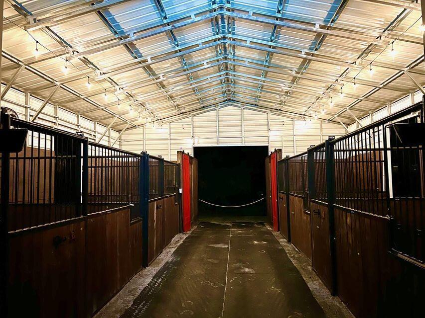 HAPPY HORSES WELCOME! 21 Acre Picturesque Equine Paradise: Fall in LOVE as you enter, offering privacy and serenity. Strategically cleared and sodded. This pristine property is ready to build your new home. Solar panel power, 1200 gallon Septic/drain field, well and water softener. 4 stall barn with motion fans, wash station, tack room and bathroom. 4 Paddocks and exercise round pen. Lovely lighting around pond. Fully fenced, electric gate entrance. Grand Oaks & pines. Wonderland of deer, rabbits, wild turkey, quail and native birds. 2023 Forest River RV not included, but is negotiable. 25 mins west of town. Ideal for horse ownership, rescue/recovery center or equine camping site. Miles and miles of trails. This one has it all - created just for YOU!