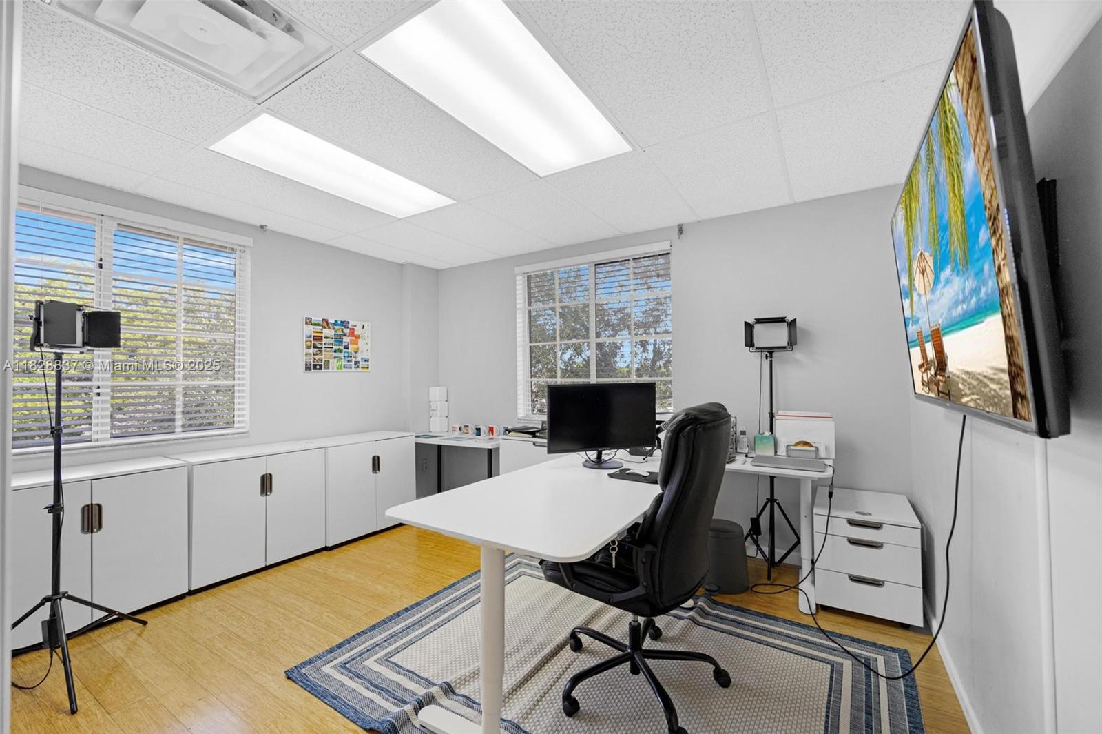 Professional private offices- corner unit with extra windows to provide bright and open office and hurricane protection, conference room, private restroom, elevator access