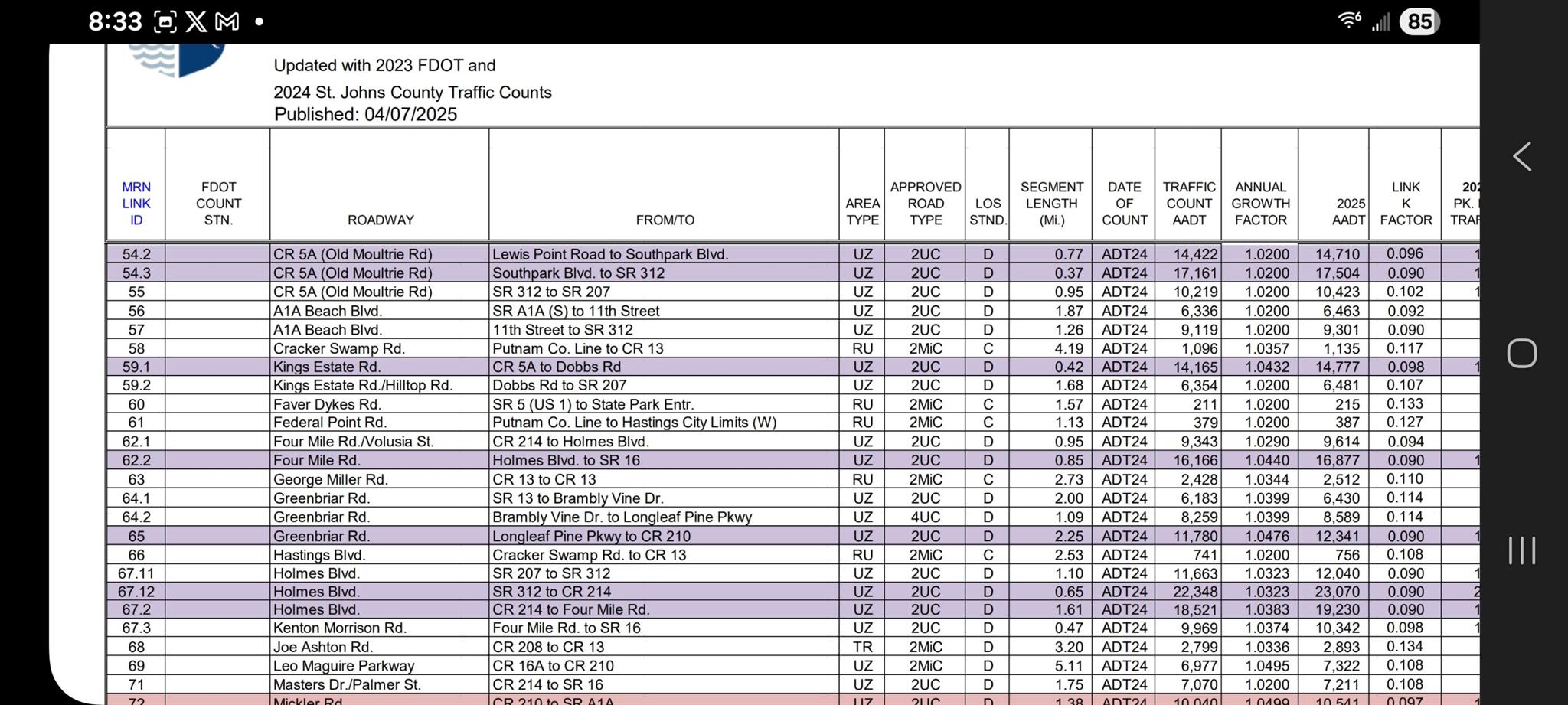 412 Feet of Frontage per each 3.5 acre parcel or 823.5 Frontage for both (per tax roll). This is directly on State Road 16 which is the Main Road in and out of Old St. Augustine, Fl. . On last review there were only two other larger parcels available in the area. One had 200 ft and the other 225 feet of Frontage on 16. Please note that the 1900 and the 1910 (Listing # 2114353) SR 16 listings are the same parcel of land with different approaches as to how it is marketed and developed. To be clear there are two engineer generated site plans in the works for this site depending on the developers vision and needs.Virtually all of SR 16 has become a High Demand/High Development Area. The vast majority of sites available two years ago are now in some phase of development.