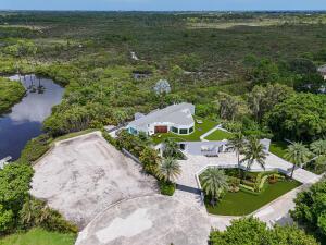 Double Lot .76 acres on the River with 140 ft of water frontage and ocean access. Two Properties being sold together. Lot 8 is a fully developed property with House & Guest House. Lot 9 has been cleared, filled, and graded, setting the stage for your future vision. Ready to build on, or it can be combined with the current home (lot 8) to make one large property on the River. New Large Dock, Pilings and a New Floating Dock are already in place. A Special Property with a 'lot' of potential. Stunning Renovated CBS Modern Home with Detached Guest House, Large Captivating Pool, Cedar Built-In Sauna, Turf Rooftop Decks and Lawn, Expansive Silver Travertine Driveway & Pool Deck, Hardscaping with Private Gated Entry. Epic Views of Loxahatchee River & Jonathon Dickinson State Park with sunset