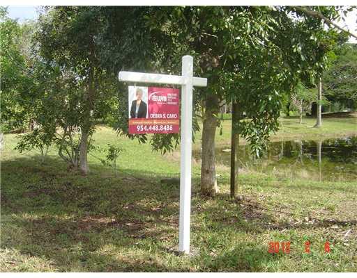 TIRED OF THE NEIGHBORS LOOKING INTO YOUR WINDOWS? NEED SPACE? THIS 2.5 ACRE CORNER LOT WITH POND, PAD AND SEVERAL MATURE TREES JUST MIGHT BE WHAT YOU ARE LOOKING FOR. A GORGEOUS SITE FOR YOUR SPECIAL HOME, NURSERY, EQUESTRIAN STALLS, OR SIMPLY BEING ABLE TO ENJOY THE QUIET PRIVACY OF THE AREA. MINUTES FROM SHOPPING, MAJOR ROADWAYS AND BOTH BROWARD AND MIAMI DADE COUNTIES. TERMS AVAILABLE WITH OWNER FINANCING.