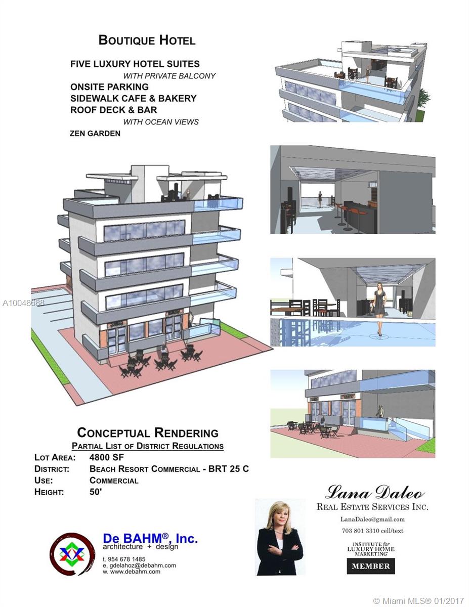 In the heart of booming Hollywood Beach, 100 steps to the sand and famous Broadwalk, becoming famous internationally, next to Jimmy Buffet's Margaritaville - here is 1,5 lots (4,800 sq.ft.) of land zoned COMMERCIAL: perfect for a small luxury hotel, Bed and Breakfast, a restaurant, offices, retail, gym, etc. HUGE POTENTIAL! Allowed buildable height - 50 feet. THE OWNER IS OPEN TO JOINT VENTURE OFFERS. Priced below comparable properties. Valuable land, dramatically increasing in value with every year.