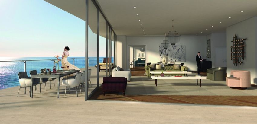The 15-story beachfront tower features only 13 luxurious 4-6 bedroom residences - only 1 residence per floor - ranging in size from 5,620 to 10,200 square feet. Furthermore, the project will feature a first-class penthouse and two expansive villas. Each residence will feature a fully customizable floor plan, a private elevator, a beautiful private plunge pool. What's more, each residence will include two fully enclosed garage bays within the parking garage with electric-car capability and trickle chargers, together with two additional bay-area parking spaces.