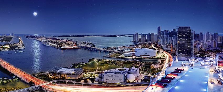All of Miami's major attractions are within walking distance, including the Adrienne Arsht Center for the Performing Arts, the home stadium of the Miami Heat basketball team, the Philip and Patricia Frost Science Museum, the Pérez Art Museum, the park with sculptural installations in the open air, the coastal Margaret Pace Park, and dozens of other world-famous locations.