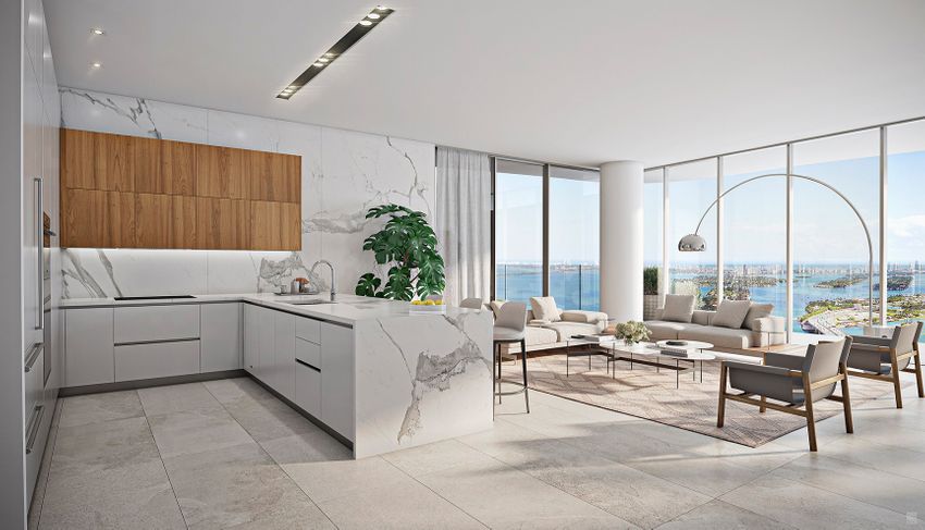 The spacious CasaBella Residences are the epitome of Italian luxury on the US East Coast. European elegance and the highest quality finishes combine with Miami's light and year-round warmth. Stunning views of the bay and the Atlantic Ocean beyond, large terraces, huge floor-to-ceiling windows, and 3-meter high ceilings – this is the embodiment of South Florida in the Italian masterpiece Piero Lissoni.