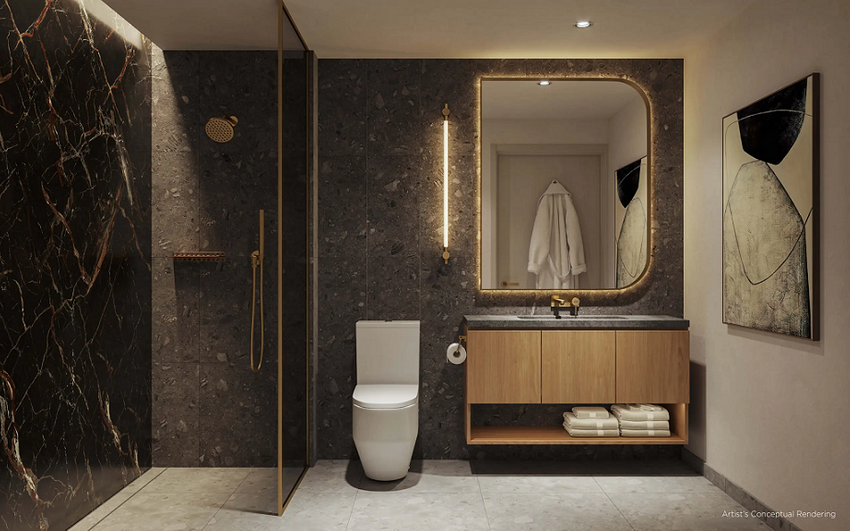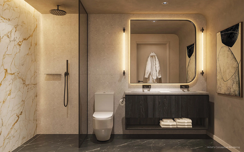 • SPA-inspired baths with Imported European cabinets with premium hardware