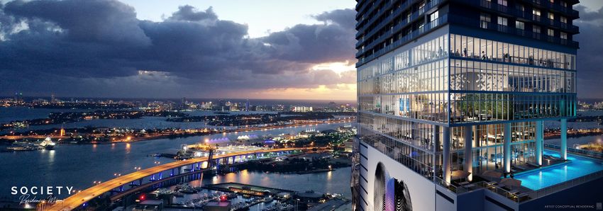 The Society Residences Miami is a stylish 49-story state-of-the-art condo building to be completed in 2022. Condominium is located in Downtown Miami, fast beside Bayfront Park, Biscayne Bay, and FTX Arena.