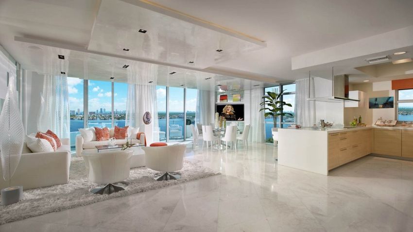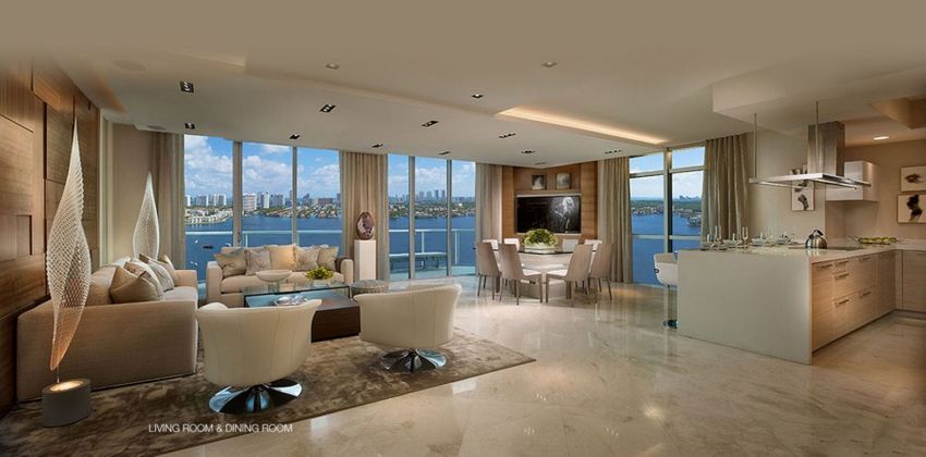 The interiors at Marina Palms Aventura offer spacious open floor plans with high ceilings, revealing incredible panoramic water vistas of the Intracoastal and beyond. Residences were featured imported Italian cabinetry by Snaidero and stone countertops, luxurious fixtures and top-of-the-line appliances.