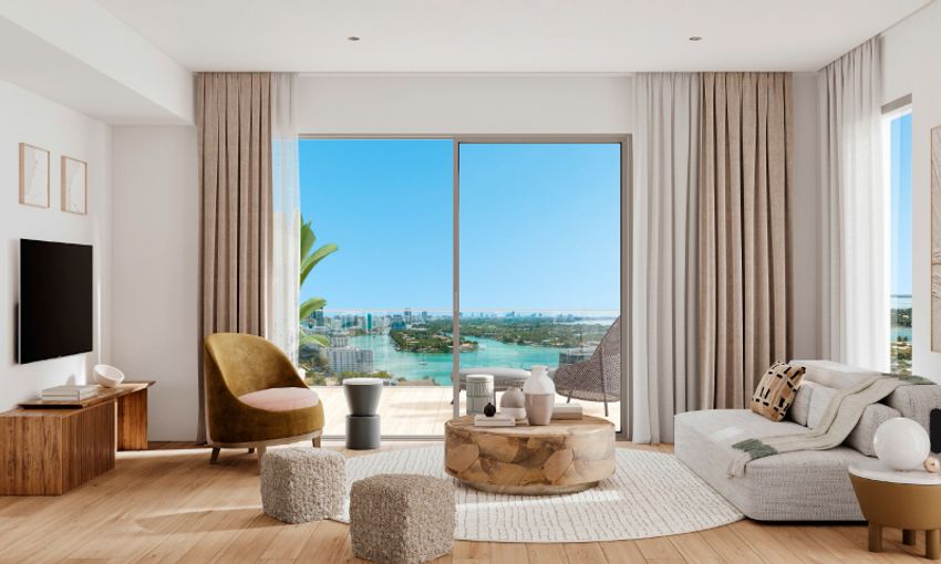 Each residence has a terrace where you can sip a coffee at sunrise or a cocktail at sunset while enjoying unobstructed panoramic views of the ocean, Biscayne Bay, and the Miami skyline.