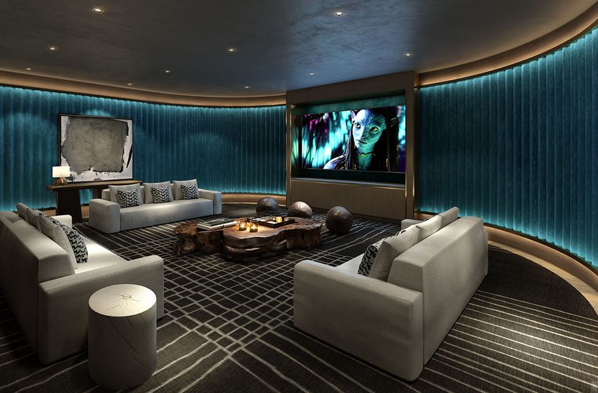 The private cinema in the complex is a circular room with soft, emerald-colored walls that provide stunning acoustics for a truly immersive experience. Grab popcorn from the bar with a huge range of drinks and snacks, stock up with 3D glasses, and enjoy the immersion in the world of your favorite movie with a group of friends on soft sofas with pillows.